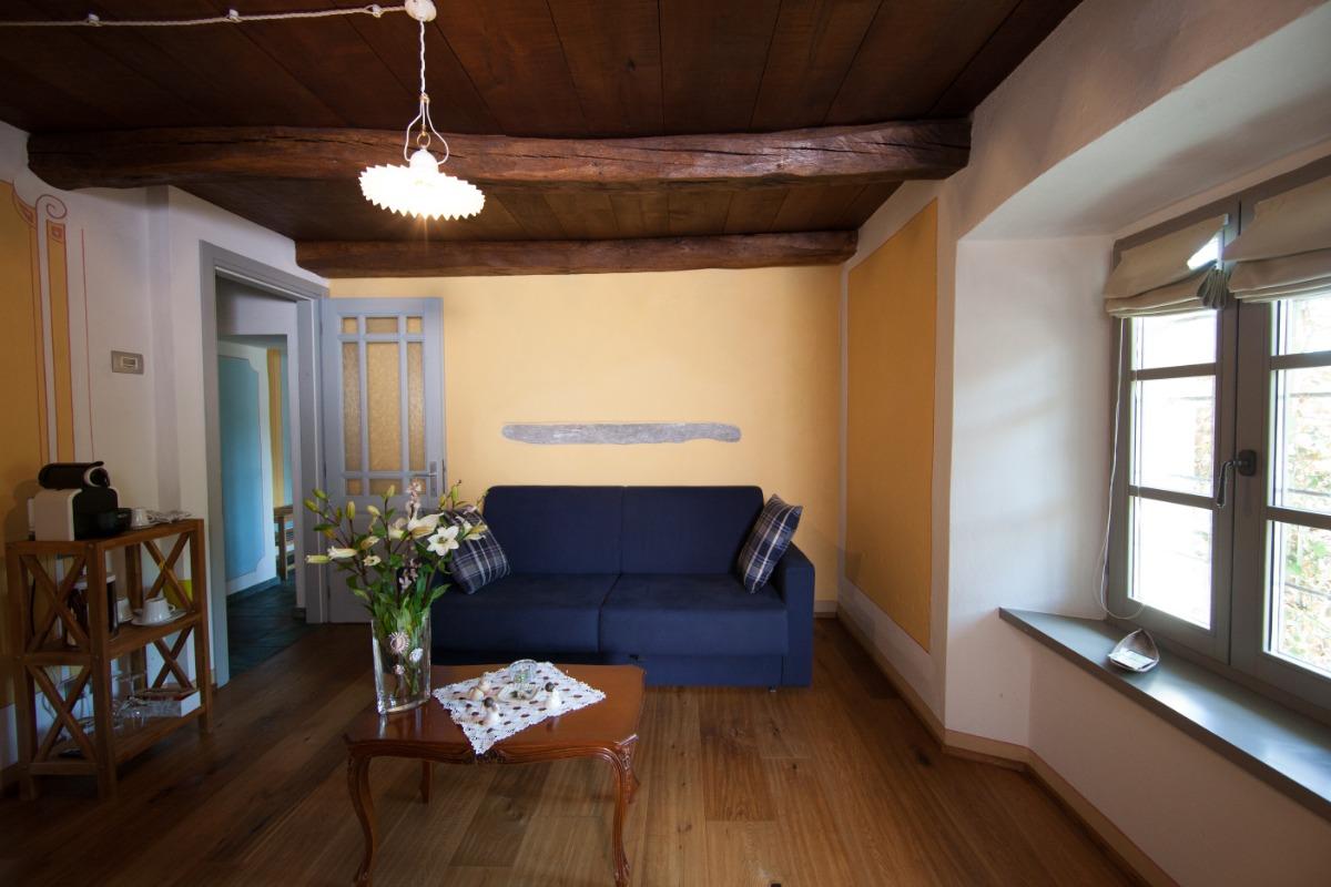 Nelle calde serate estive, potrete rilassarvi nell'area relax esterna sorseggiando un vino locale, mentre i vostri bambini giocano in sicurezza nell'ampio giardino attrezzato. Immersa nella natura circostante, questa casa di campagna offre un rifugio perfetto per chi cerca serenità e comfort. Ogni mattina, una ricca colazione a buffet è servita sotto i pergolati del cortile o nella saletta "Proman". Su richiesta, è disponibile una colazione per ospiti celiaci.
