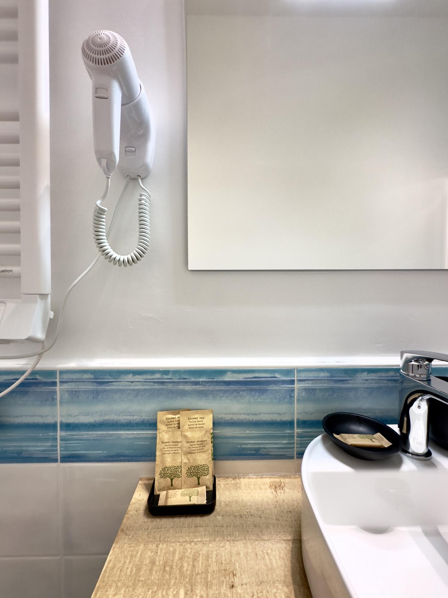 Le camere, tutte climatizzate e dotate di bagno privato, offrono diverse soluzioni adatte a ogni esigenza. Alcune vantano un balcone con vista, mentre la tipologia Deluxe, con bagno privato e affaccio esterno, rappresenta la scelta ideale per chi desidera un soggiorno più romantico. Ogni spazio è arredato con attenzione per garantire relax e tranquillità, completato da comfort come frigobar, televisione, asciugacapelli e connessione Internet.