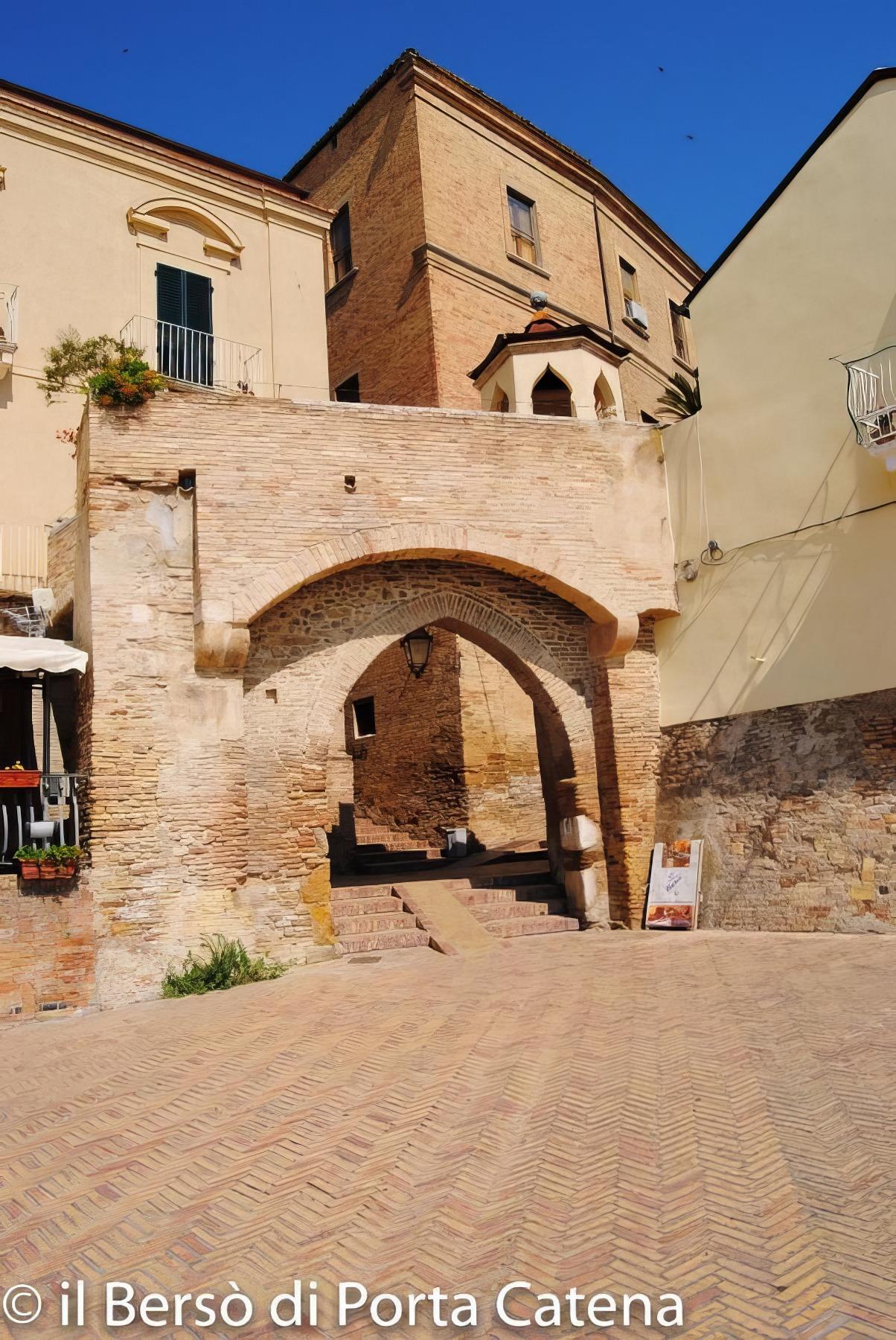La zona in cui sorge Il Bersò di Porta Catena è tra le più suggestive di Vasto, un borgo antico affacciato sul mare che conserva intatta la sua anima storica e la vivacità della vita locale. La struttura si trova proprio sulla loggia Amblingh, un balcone naturale a picco sull’Adriatico che regala scorci mozzafiato sul golfo, sulle isole Tremiti e sul promontorio del Gargano, incorniciati dalla luce calda del tramonto. Questa passeggiata panoramica, lastricata in pietra e fiancheggiata da palazzi storici, è uno dei luoghi simbolo della città, amato sia dagli abitanti che dai visitatori, e rappresenta il fulcro della vita serale vastese, tra eventi culturali, locali tipici e botteghe artigiane.