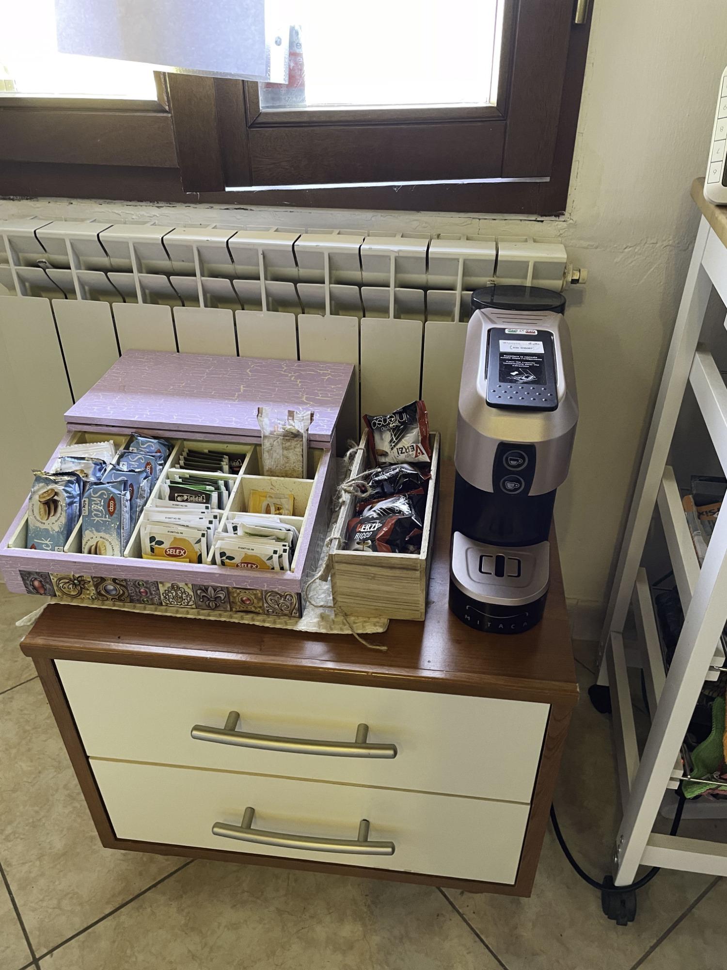 Nella nostra casa, troverete a vostra disposizione deliziosi caffè e tè da gustare utilizzando la pratica macchinetta a cialde.