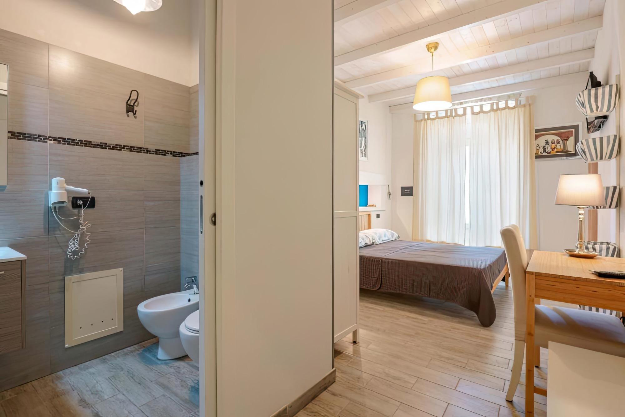 The property occupies the second floor of a historic building with elevator and stair access, welcoming guests into well-maintained, bright, and quiet spaces. The rooms, tastefully decorated with attention to detail, are designed to provide a peaceful retreat after a day spent enjoying the sea and culture. Each accommodation features a private bathroom with a shower, complimentary toiletries, a hairdryer, and towels, as well as independent climate control, a 32" LED Smart TV with satellite channels, free Wi-Fi, and a safe. The accommodations also include a sitting area, refrigerator, microwave, toaster, and coffee maker to ensure maximum autonomy and comfort.
