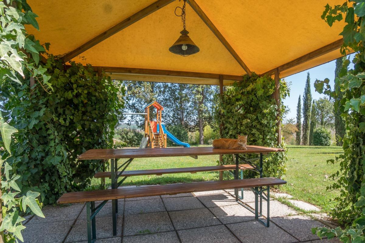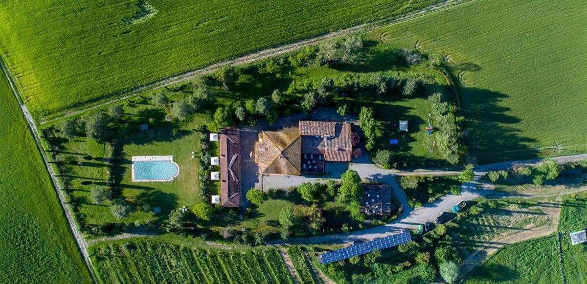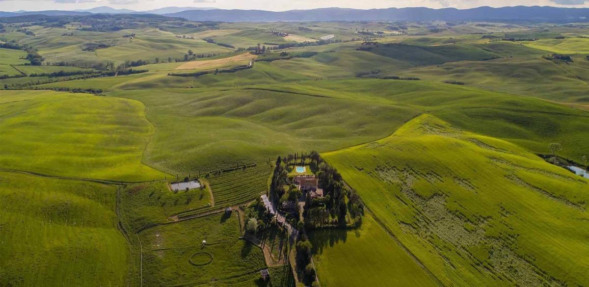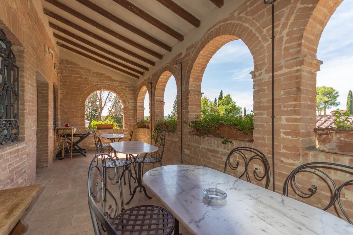 Spacious and bright rooms, all with panoramic views of the Val d'Arbia. Panoramic terrace, wide breakfast room with fireplace, reading room with billiards and piano. Salt-water pool, large garden shaded with trees, flower beds, immersed in the landscape of the Crete Senesi. Three hectares of land where there are fences with horses and donkeys, a small vineyard and a cultivation of vegetables for the exclusive use of the family and guests.