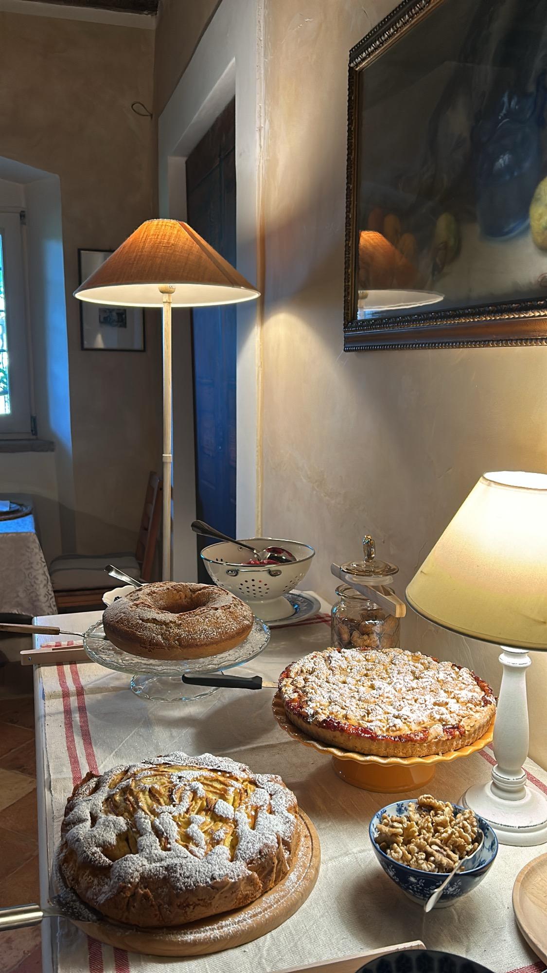 The continental breakfast, which can be enjoyed in the dining room or in the garden, offers a variety of delights including cakes, cookies, toast, brioches, bread, cereals, cappuccino, milk, tea, yogurt, fresh fruit, fruit juices, butter, and jam.
