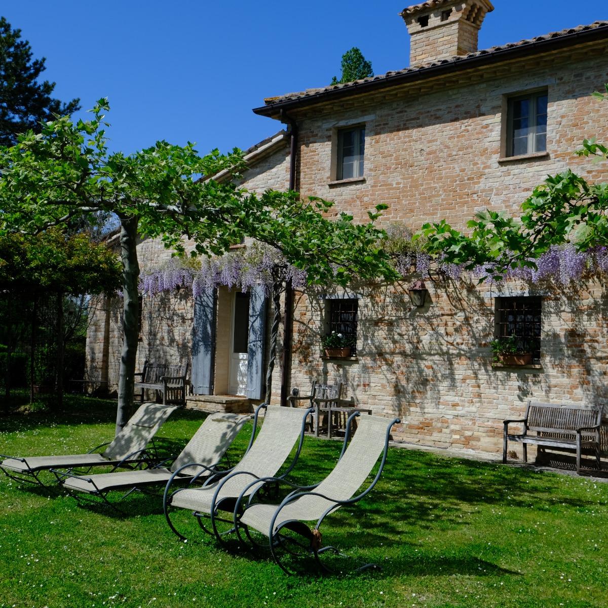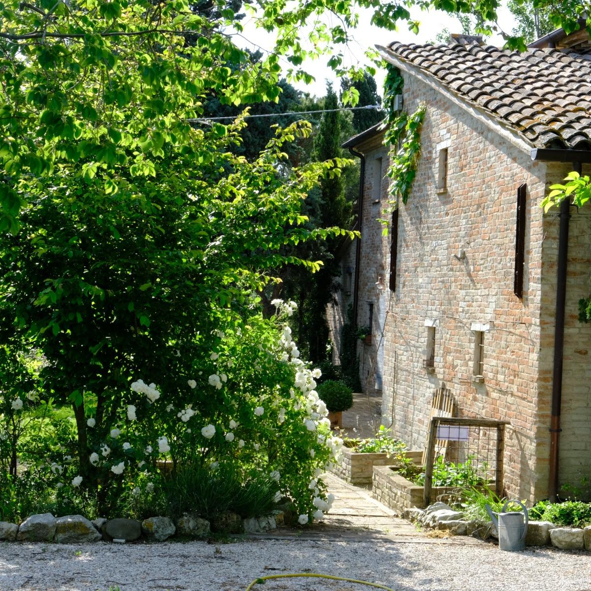 The estate offers a warm and welcoming atmosphere thanks to its different interiors and details made with typical materials of Marche architecture, such as terracotta floors, wooden fixtures, and chestnut beams.