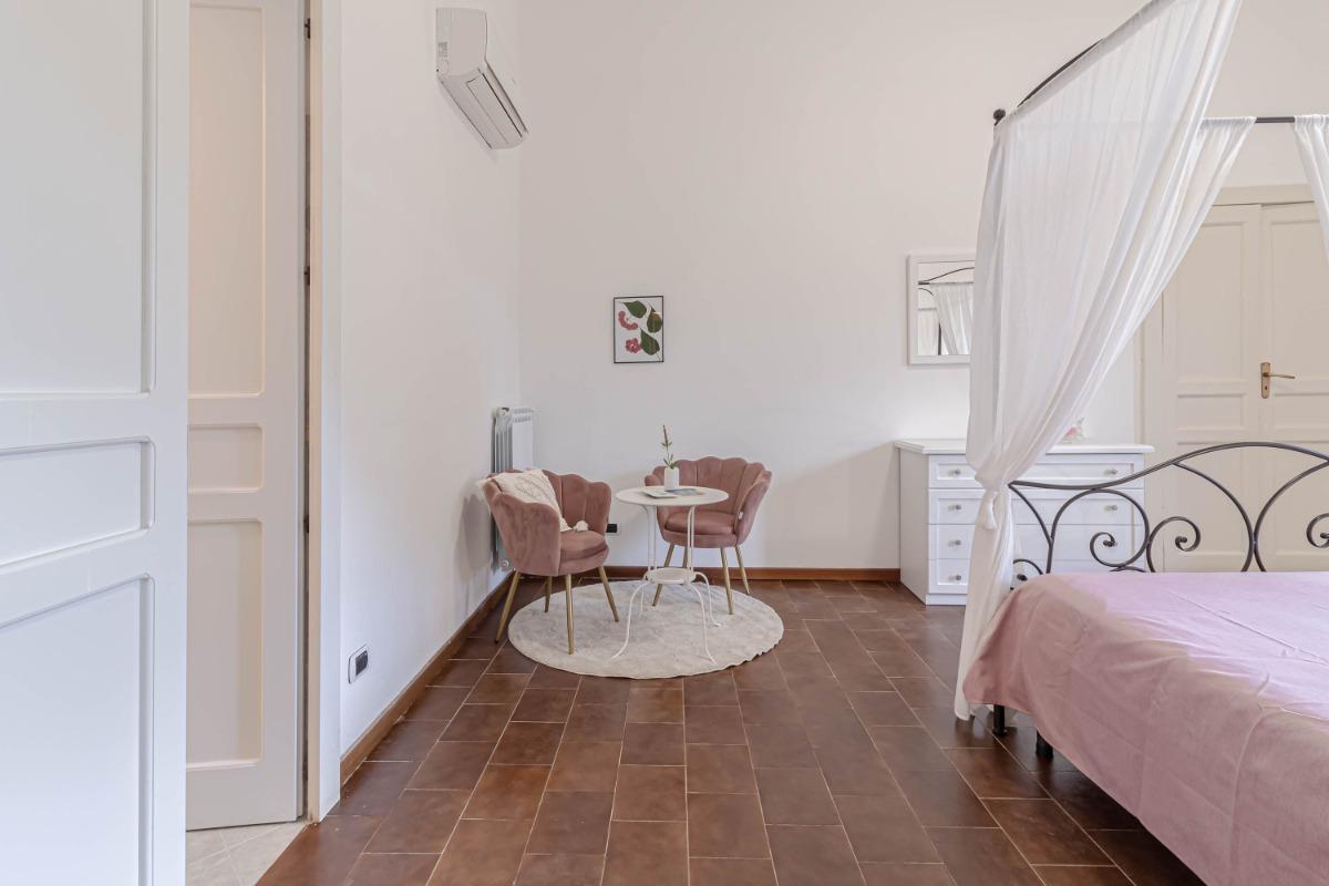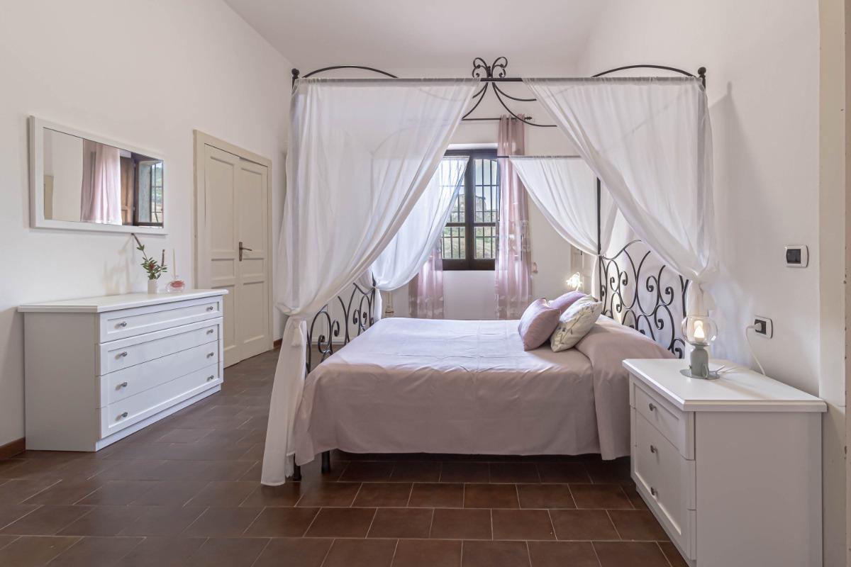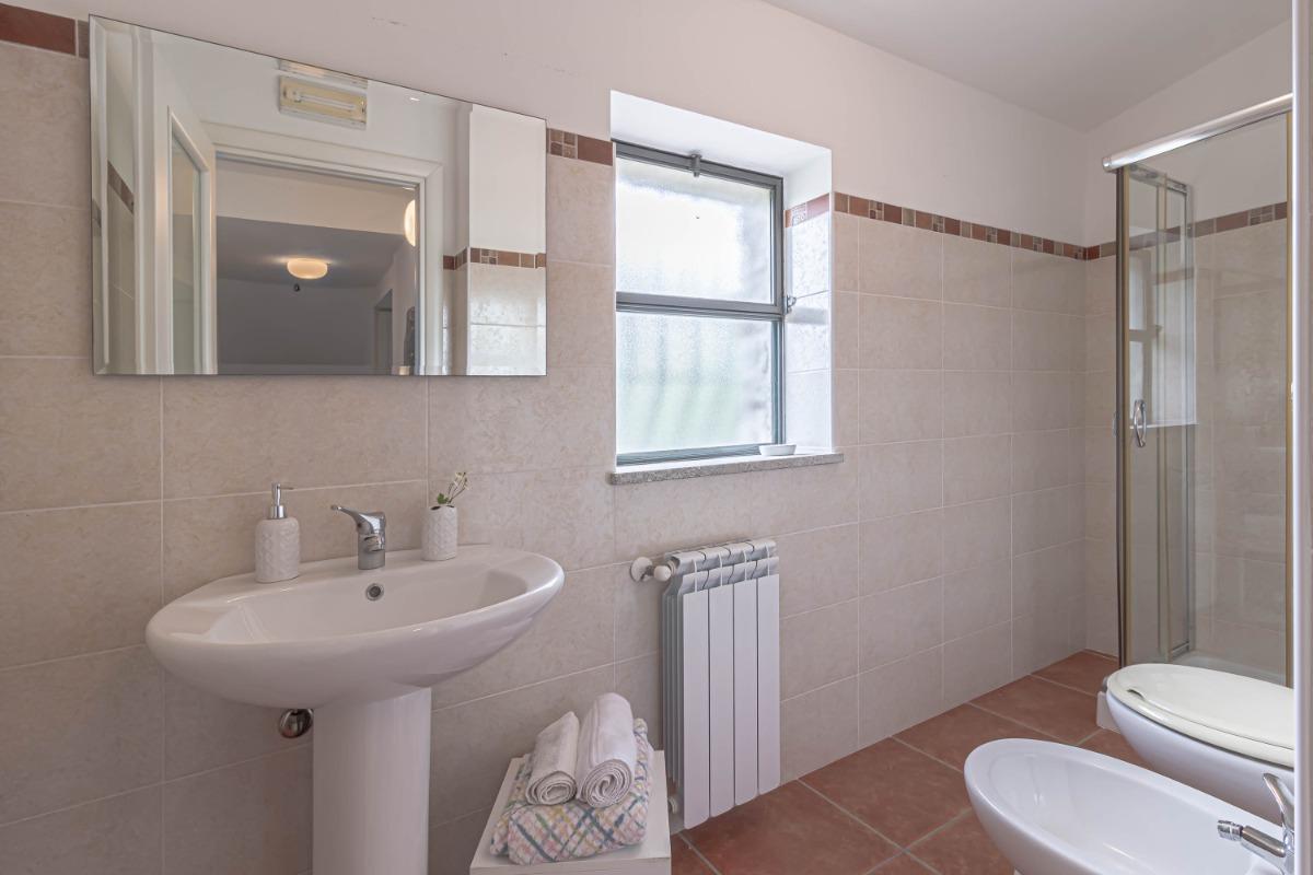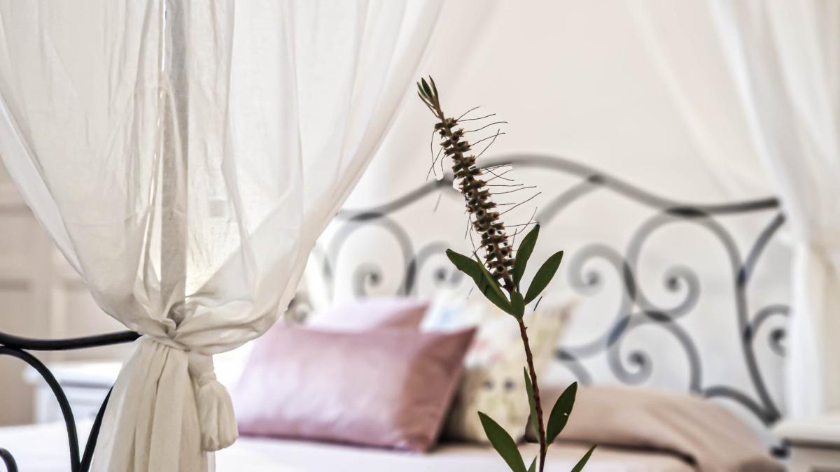 La casa, sempre riservata ad uso esclusivo degli ospiti, offre quattro camere al primo piano: una quadrupla con bagno interno, una matrimoniale con letto a baldacchino, terrazza privata e bagno interno, una tripla con bagno esterno condiviso e una singola. Tutte le camere sono dotate di aria condizionata, set di cortesia e affacci sul giardino, garantendo un’atmosfera silenziosa e rigenerante. La biancheria e gli asciugamani sono forniti, così come il phon in ogni bagno.