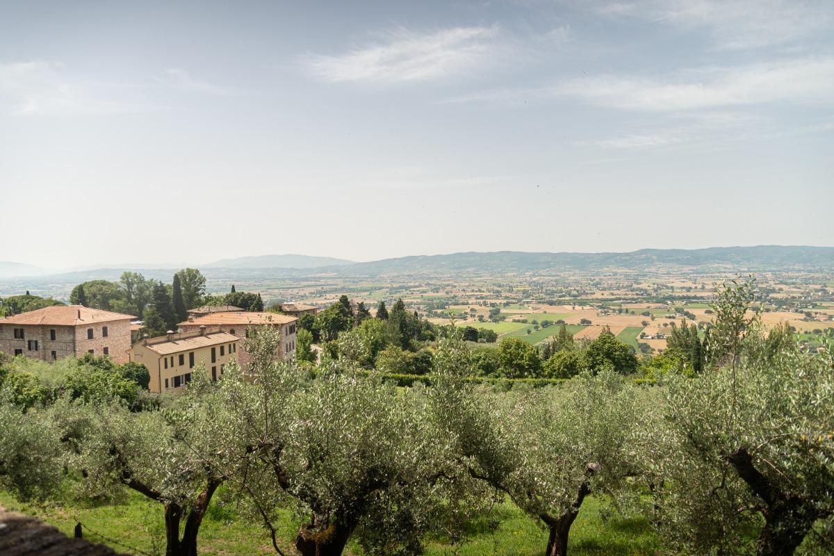 The B&B Il Chiostro is located on the main street of Borgo Aretino along the route that leads from Porta Nuova, one of the old entrances to the city, to Piazza del Comune through the evocative Basilica of Santa Chiara. This splendid place of worship is a short distance from the property and can be admired from our charming garden terrace. As soon as you step through the door of Il Chiostro, you will find yourself immersed in the narrow streets of the center of Assisi, breathing in the atmosphere of history, culture, and architecture that pervades these ancient streets.