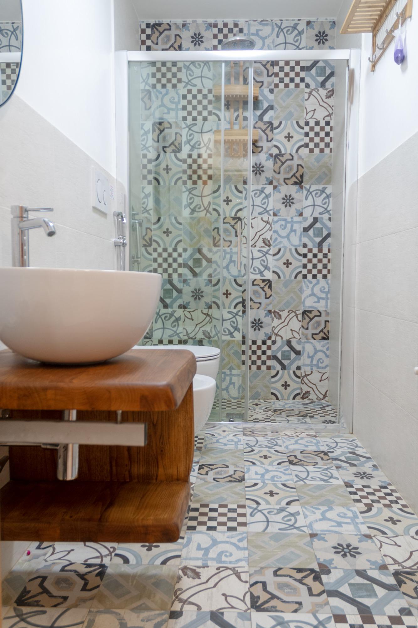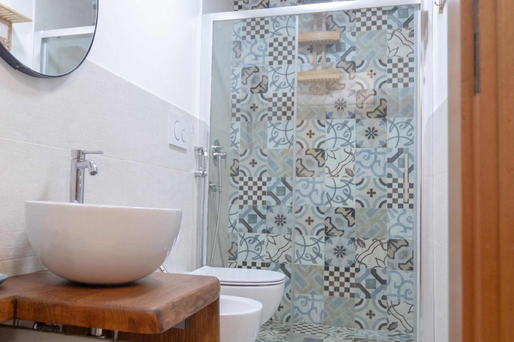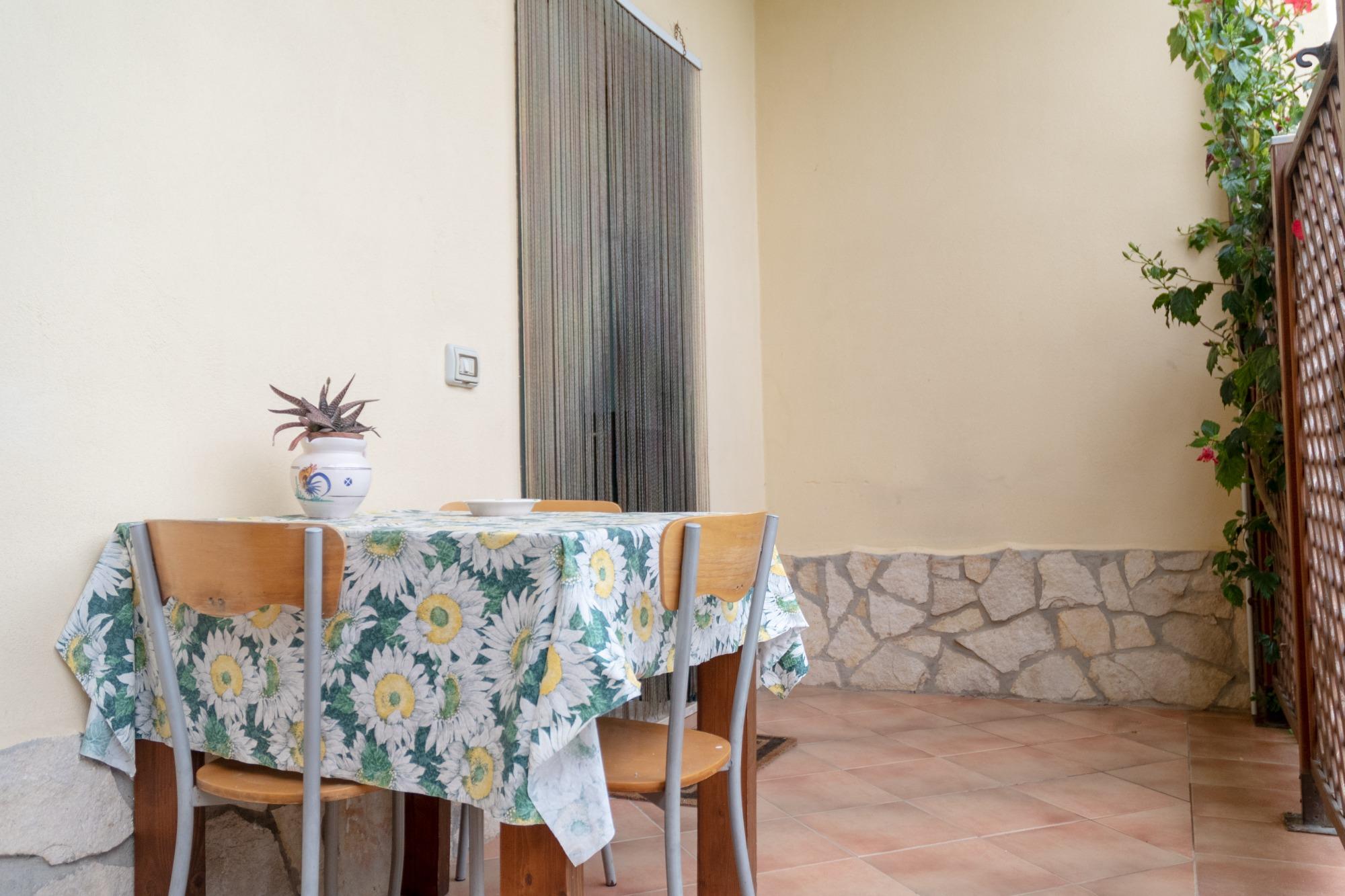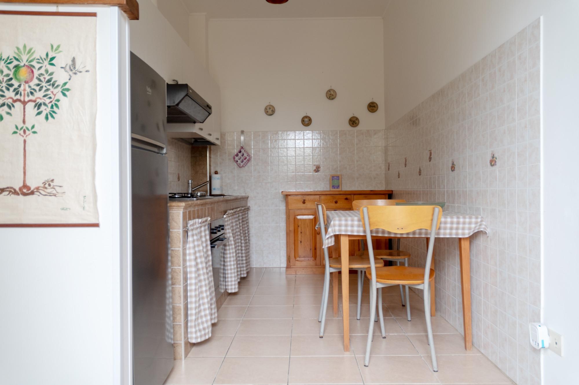 La scelta ideale per una vacanza comoda ed indipendente. Questo Bilocale posto al piano terra, consente di ospitare massimo tre persone. Dall’ingresso si entra direttamente nella cucina abitabile arredata con tavolo, sedie ed una credenza. L’angolo cottura ha un lavello a due vasche, piano fuochi a gas, forno elettrico, frigorifero con freezer, cappa e pensili forniti del necessario. Nell’ampia camera tripla troverete un letto matrimoniale ed un letto singolo. Abbiamo pensato di arredarla con un comò, due comodini ed una poltrona; inoltre è stato realizzato un armadio a muro molto capiente. Una porta finestra rende questa camera luminosa e fresca. Molto particolare è il bagno in camera con cementine decorate. Completa l’appartamento la graziosa veranda sul giardino con tende solari, tavolo, sedie e poltrone dove potete pranzare, leggere un libro o rilassarvi.