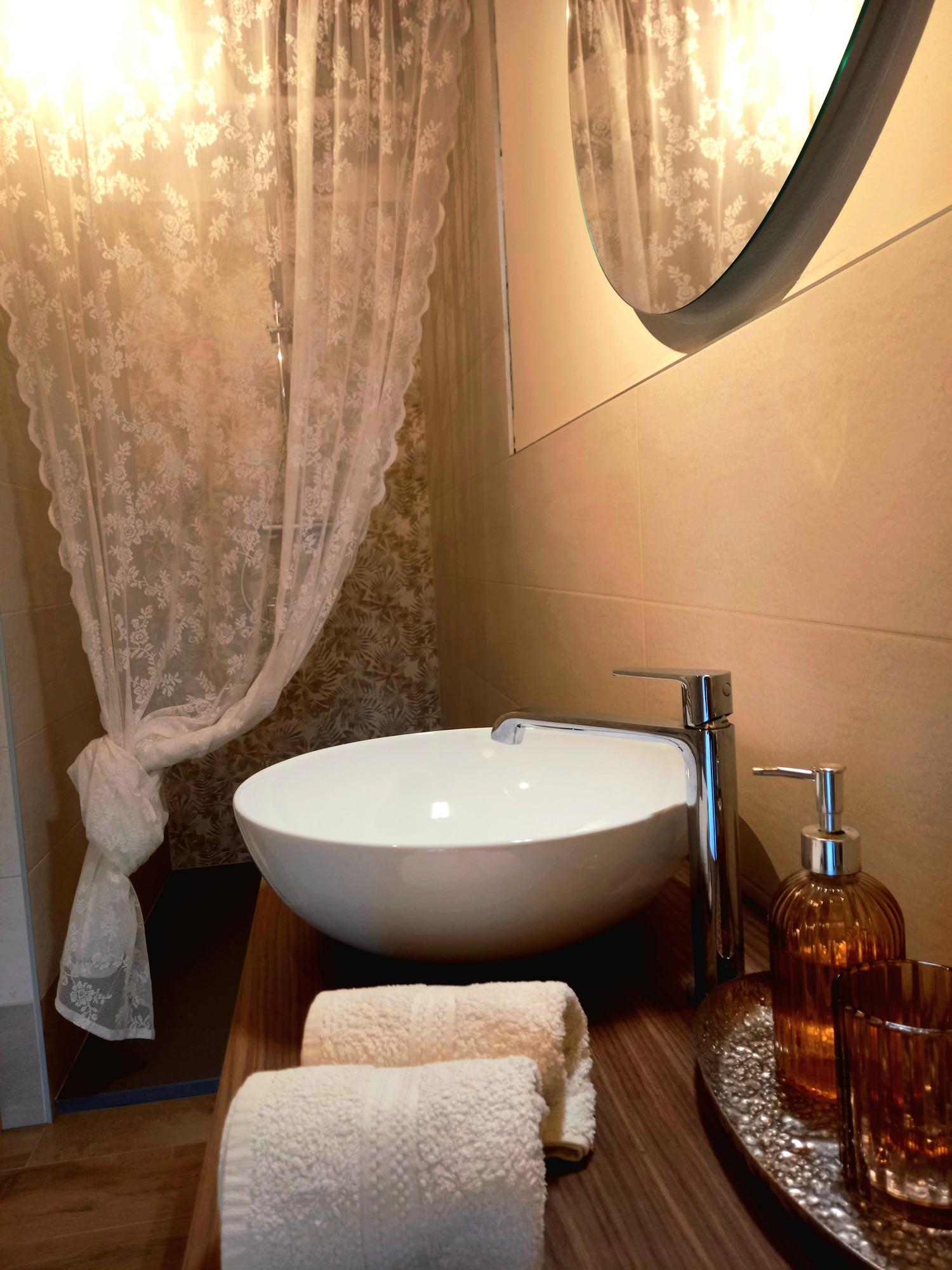 Nestled among the hills of an ancient village surrounded by greenery, this charming little house welcomes guests with a serene and familial atmosphere, where every detail reflects a genuine commitment to hospitality. The two double rooms, each featuring a private bathroom with a walk-in shower, provide bright and relaxing environments adorned with exposed wooden beams. One of the rooms also boasts a terrace, perfect for enjoying the tranquility and natural beauty of the surroundings.