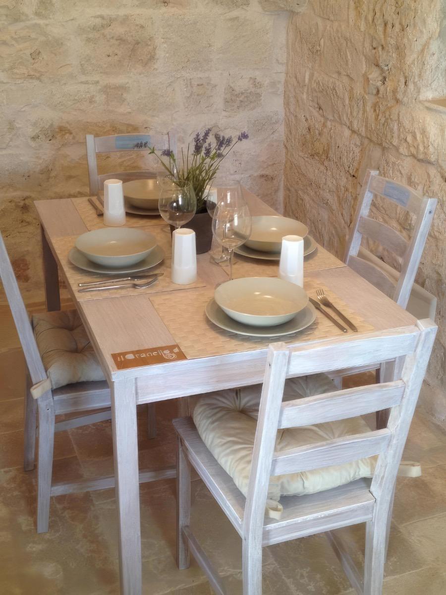 "Il Granello di Senape in Valle d'Itria" è una struttura a TRULLI interamente in pietra, completamente ristrutturata nel rispetto della sua autenticità, grazie alla manodopera di maestri del posto. Dispone di un complesso di Trulli, stalla, fienile e sala da bagno nel Trullo con vasca idromassaggio. La struttura può ospitare anche famiglie da 4 persone o più. Tutte le camere sono dotate di climatizzatore, riscaldamento, angolo cottura, frigo-bar, phon, bagno in camera con doccia, tv satellitare. La struttura è immersa nella campagna della Valle d'Itria e nella tipica vegetazione locale: macchia mediterranea, agapantus, salvia, alloro, rosmarino, santolina, lantana e ulivi.