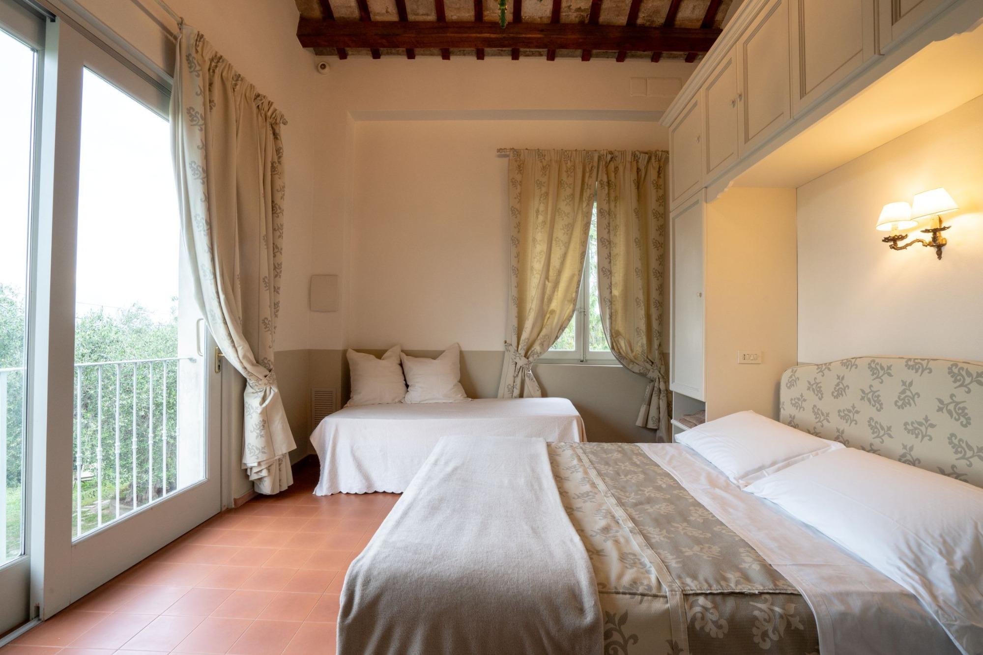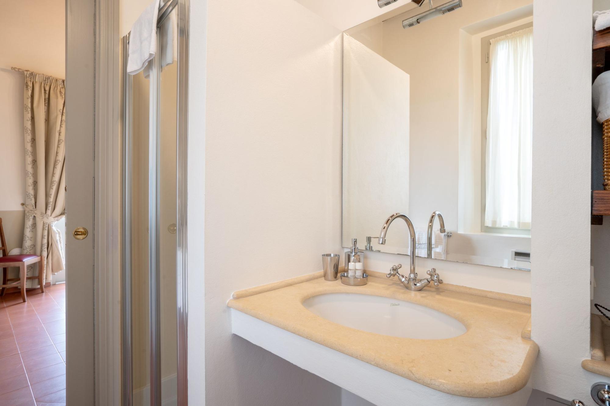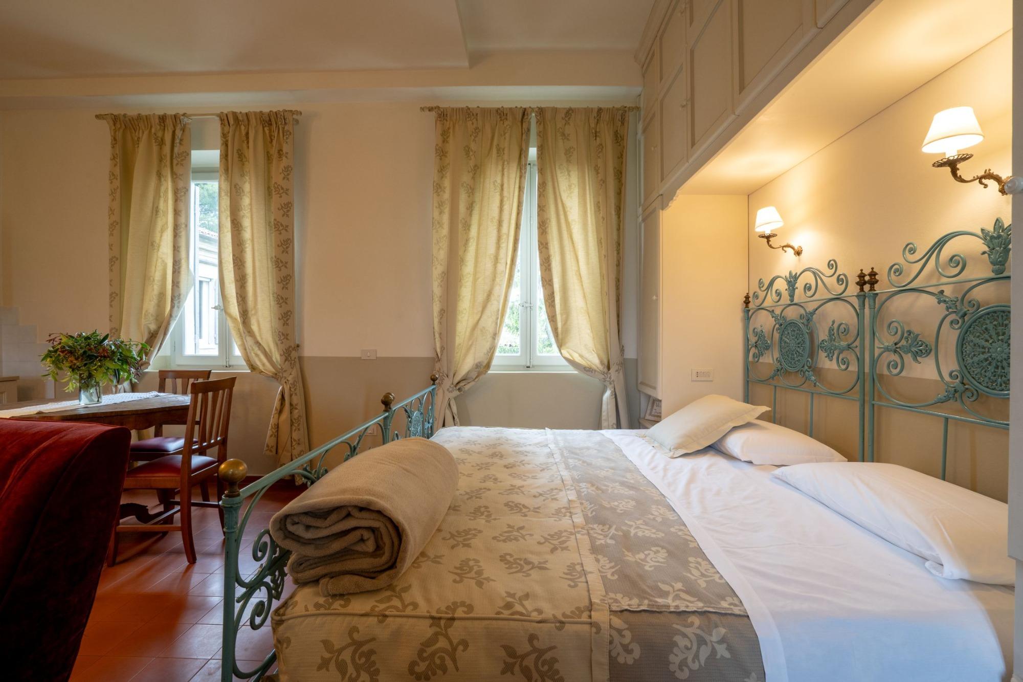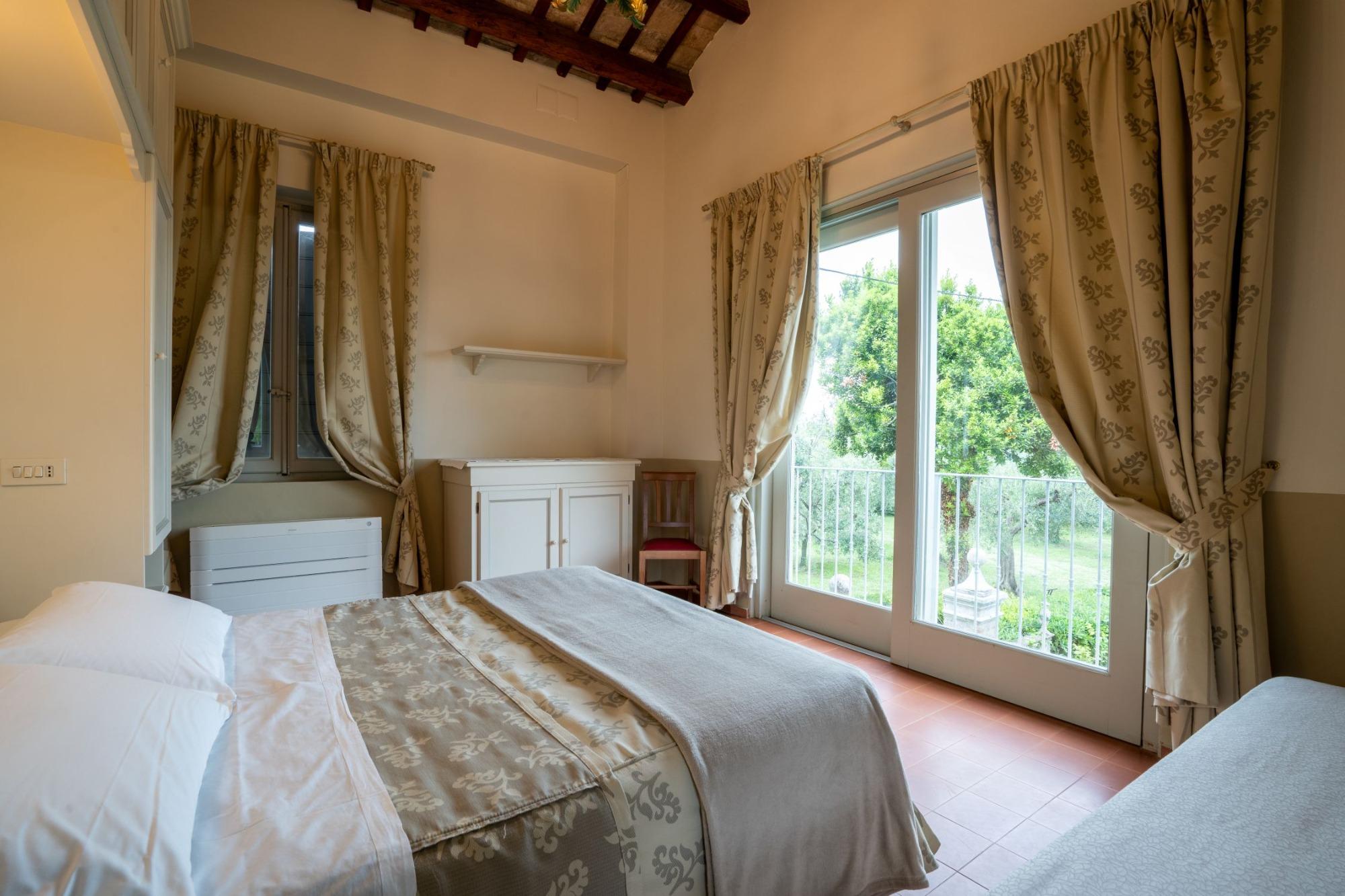 The studio looks out onto the Italian farmhouse's courtyard and is a few steps away from the pool. Outside there is a lawn with garden furniture where you can relax, or enjoy your meal.