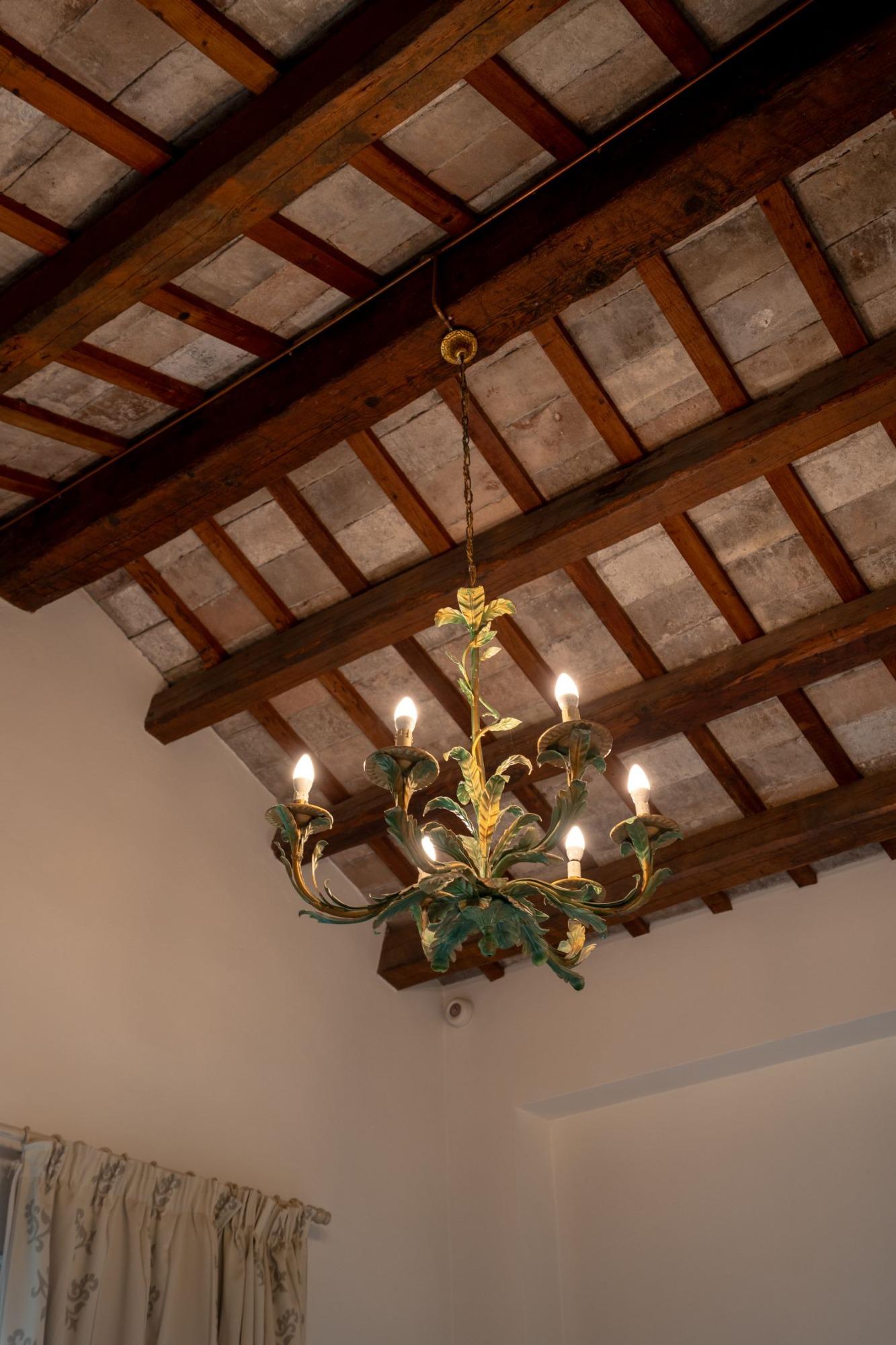 An ancient spiral staircase leads upstairs. On the first floor there is a bathroom with bathtub; on the second floor there is a cozy bedroom with king size bed; on the roof there is the belvedere terrace.