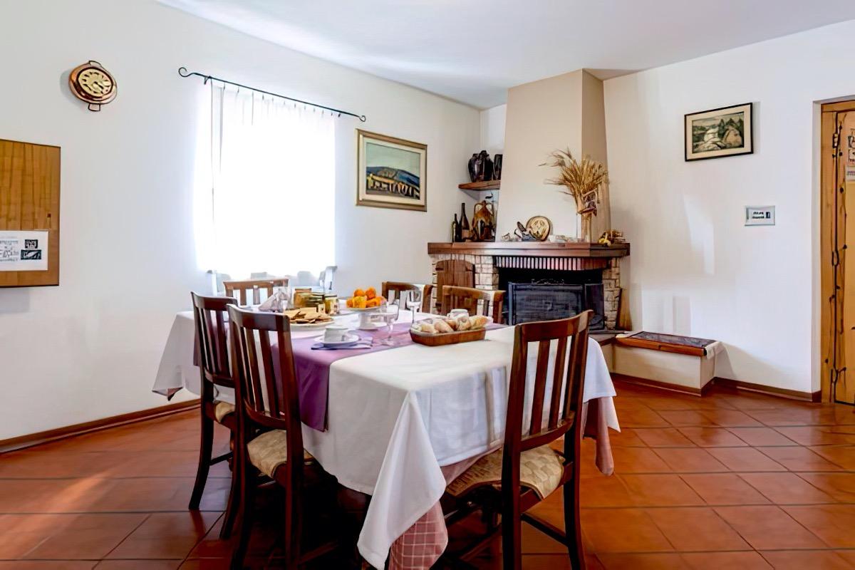 Breakfast, consisting of typical Umbrian products and Assisi sweets, is served in a lounge with a fireplace, while during the good weather it is enjoyed outdoors, under the gazebo, where the only background noise is that of the forest.