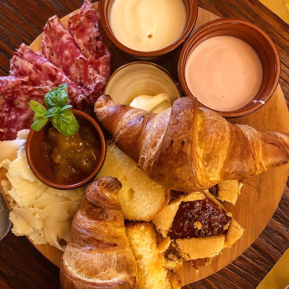 Enjoy a delicious Italian breakfast consisting of coffee, milk, tea, orange juice, croissants, and a selection of savory delicacies! You can also taste homemade cakes, fresh bread, seasonal fruits, butter and jams made by us, as well as yogurt.