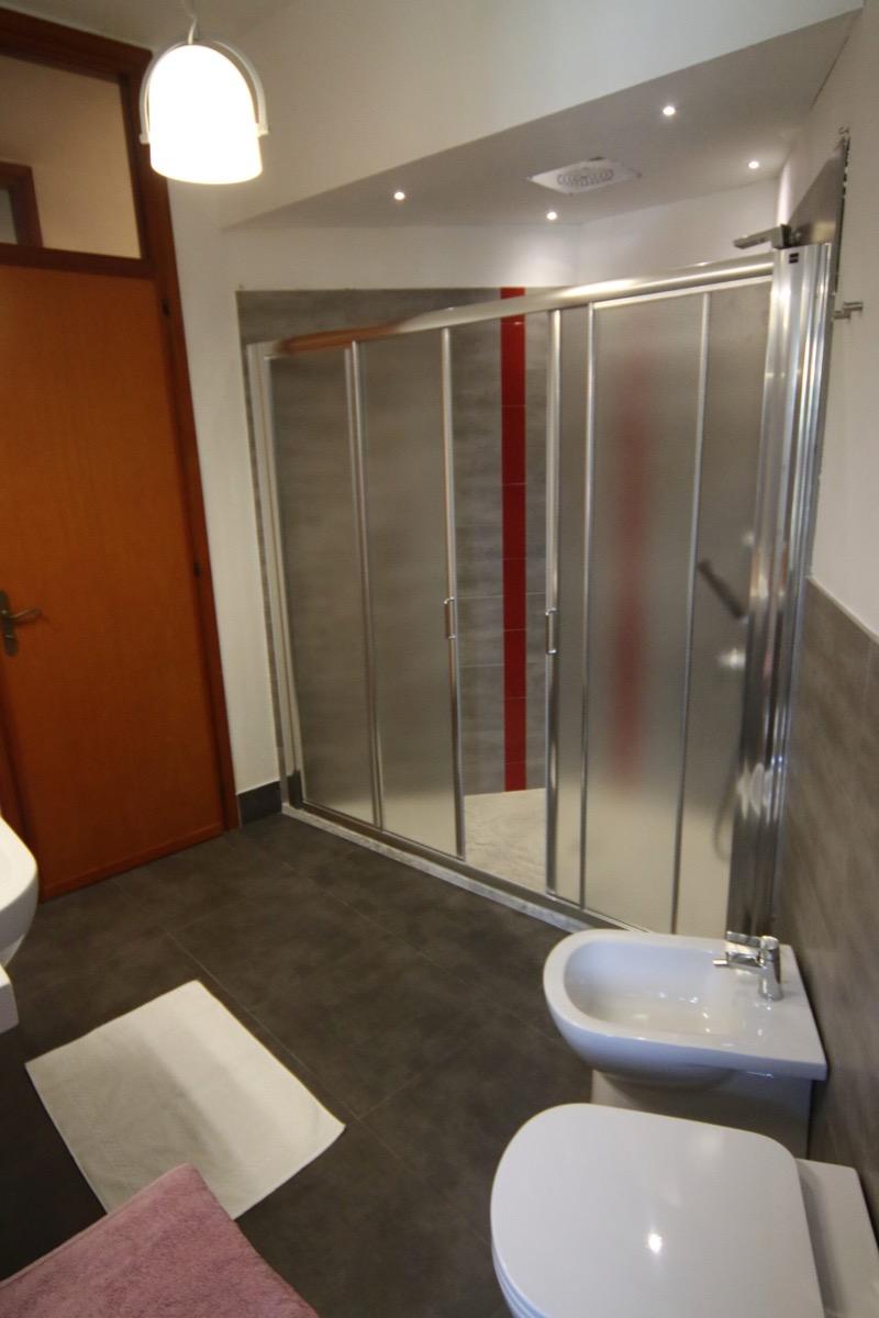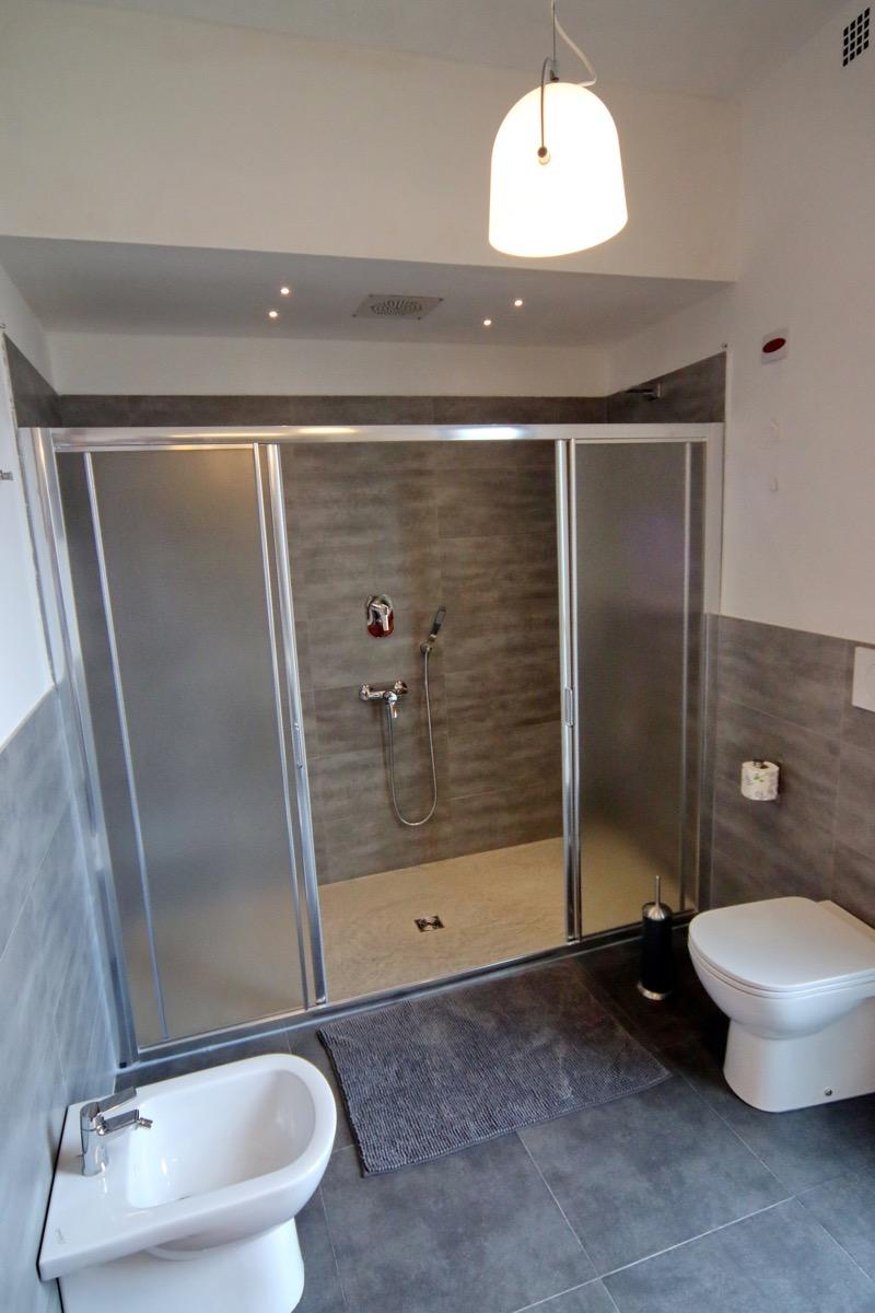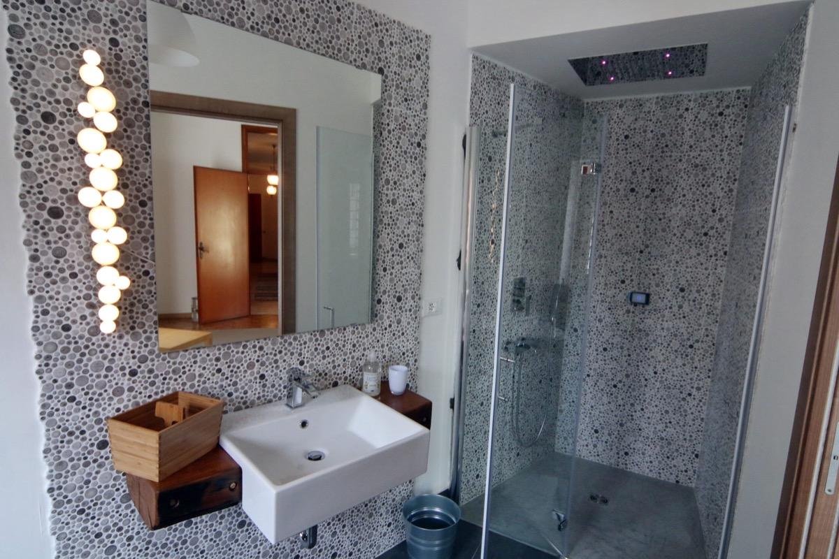 The apartment is elegantly furnished and offers a welcoming atmosphere. It is spacious and comfortable, with a total of 3 bedrooms, each with a private bathroom, for a total of 6 beds. All rooms are equipped with air conditioning and free wifi. Upon your arrival, we will offer you complimentary welcome water in each room. Additionally, in our lounge, we provide our guests with a refrigerator and a kettle, so you can prepare tea or coffee independently.
