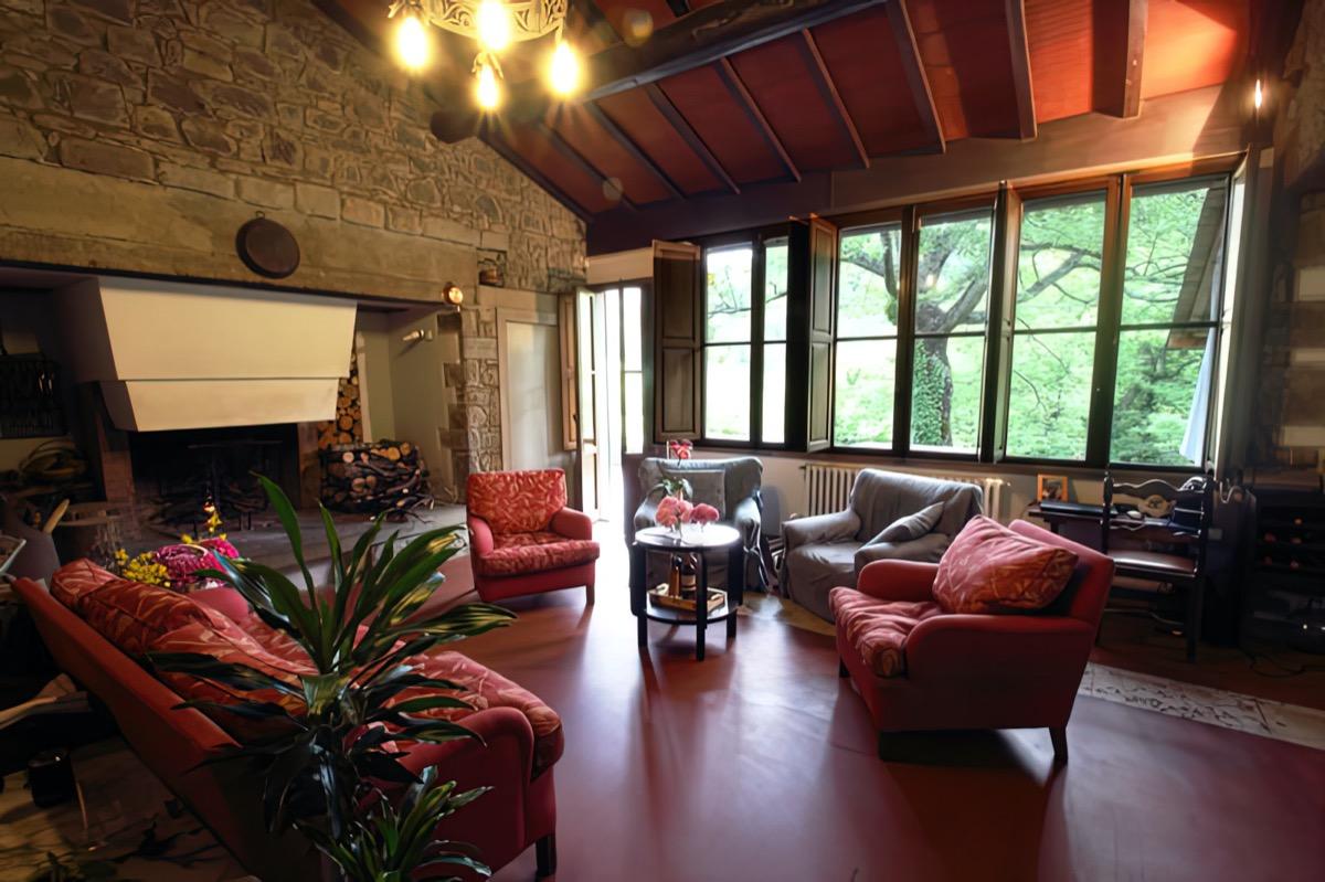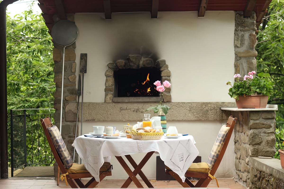 The villa has a charming breakfast room: during cooler periods, you can enjoy breakfast with Tuscan specialties and the intimacy of the fireplace, while in summer months you can sit directly on the terrace with a view of Monte Falterona.