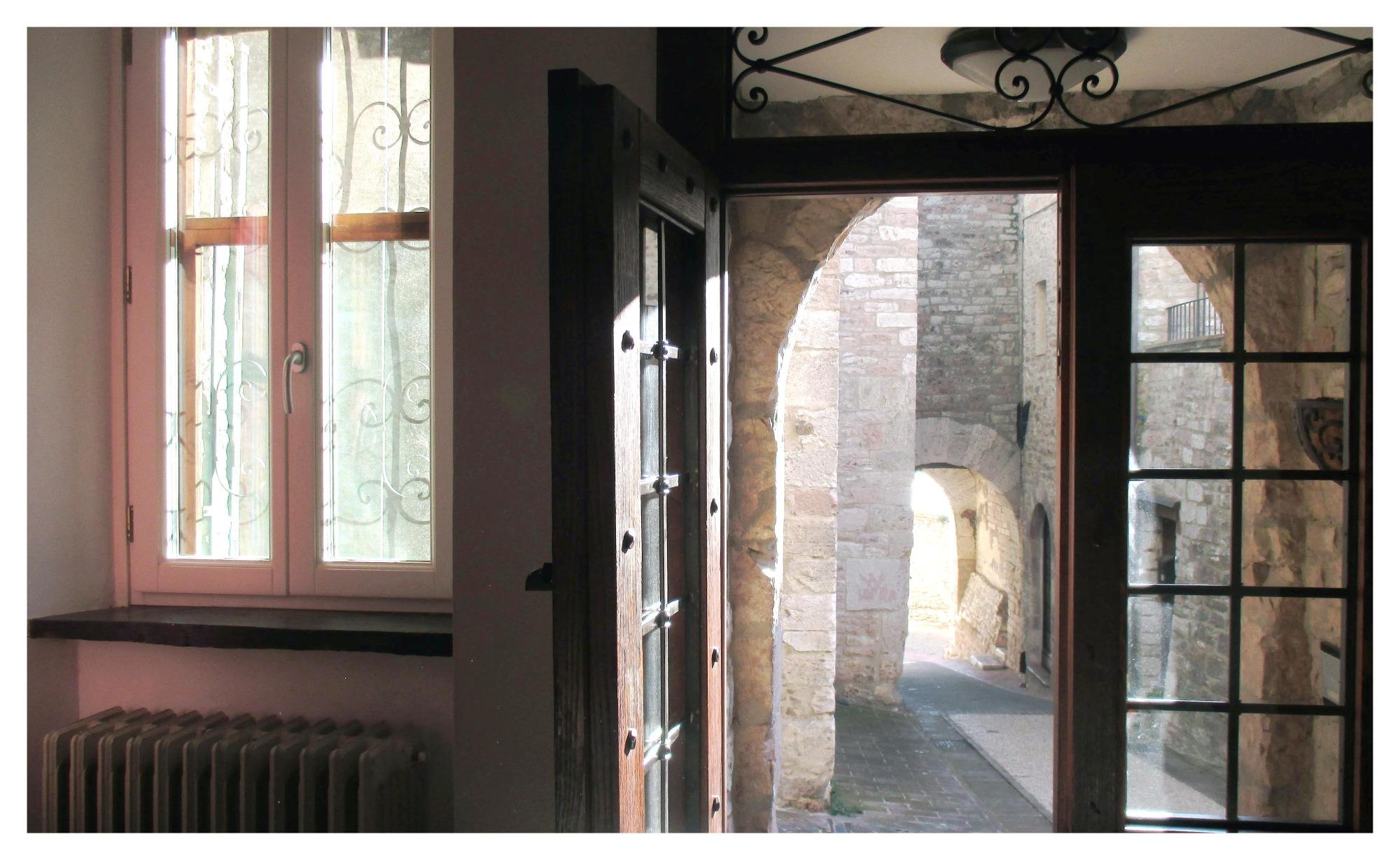 La bâtisse est située dans la rue Jorgensen, l'une des plus charmantes et paisibles du centre historique d'Assise. À quelques pas de la Rocca Maggiore et de la Piazza del Comune, cet endroit tranquille préserve intact le charme du passé, avec ses arches médiévales, ses pierres sculptées et ses fresques qui racontent des siècles d'histoire. La rue porte le nom du poète danois Johannes Jørgensen, qui y a résidé longtemps et est aujourd'hui honoré par une plaque commémorative. Dans les environs se trouvent l'église de Santa Maria delle Rose, érigée sur un ancien site romain, et l'un des plus beaux belvédères de la ville, parfait pour admirer le coucher de soleil sur l'Ombrie. L'emplacement est idéal pour ceux qui souhaitent explorer Assise à pied, tout en profitant d'une atmosphère authentique et pleine de beauté.