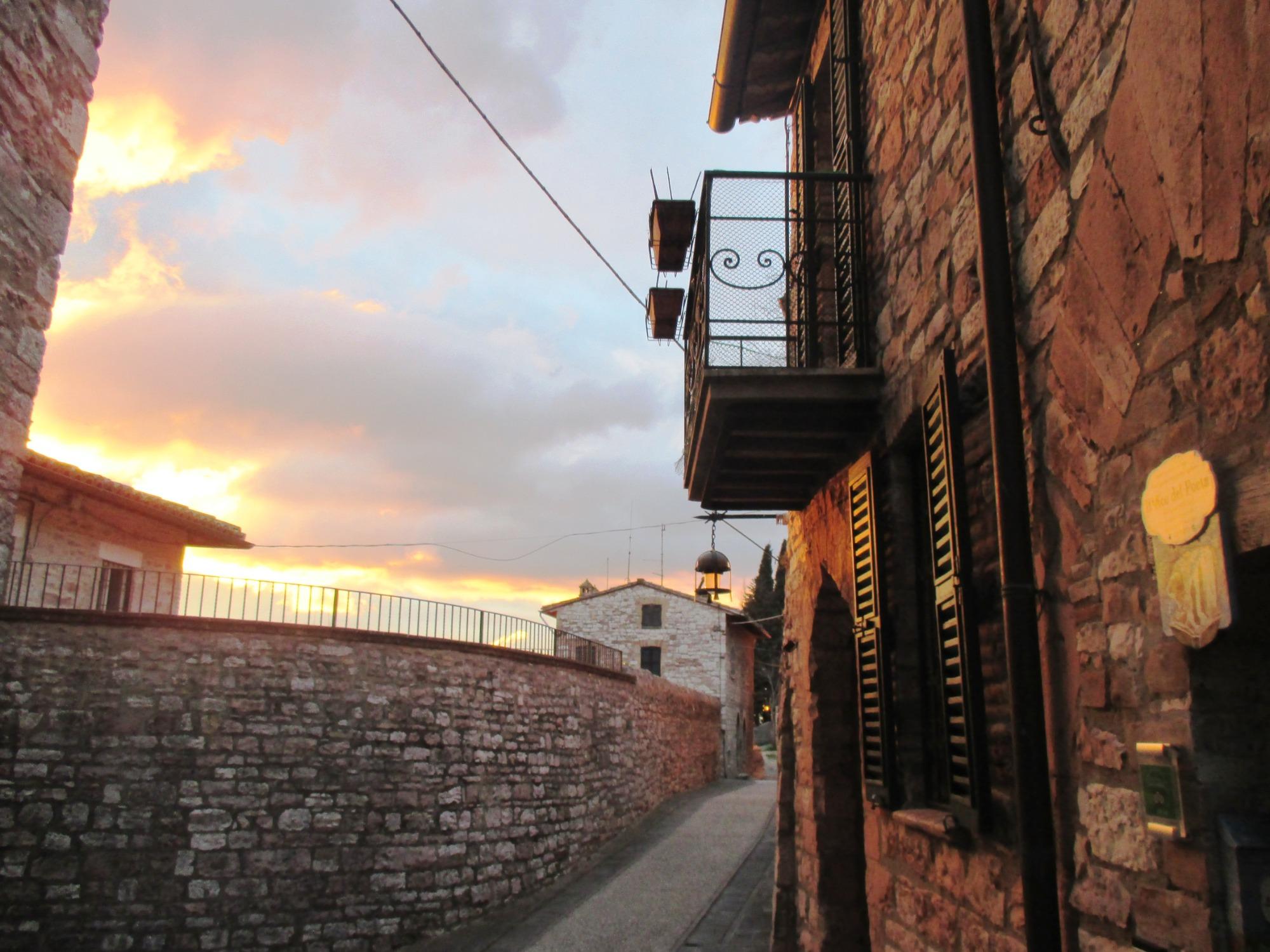 La Via Jorgensen, où se trouve l'établissement, est une ruelle calme et chargée de poésie, à quelques mètres de la Piazza del Comune. C'est ici que vécut le poète danois Johannes Jørgensen, et une plaque commémorative rappelle encore aujourd'hui son statut de citoyen d'honneur. La région conserve des traces médiévales et des vestiges romains, des fresques et des décorations qui racontent l'histoire d'Assise à chaque pas. À courte distance se trouve l'un des plus beaux belvédères de la ville, idéal pour admirer le coucher de soleil avec un verre de vin.