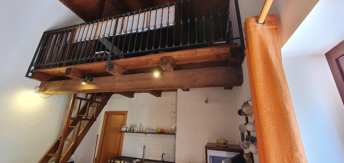 Appartamento con soppalco presso Il Vigneto, appartamento a piano terra con bagno, camera matrimoniale, soggiorno con angolo cottura e divano letto, soppalco sopra il soggiorno con altri due posti letto.