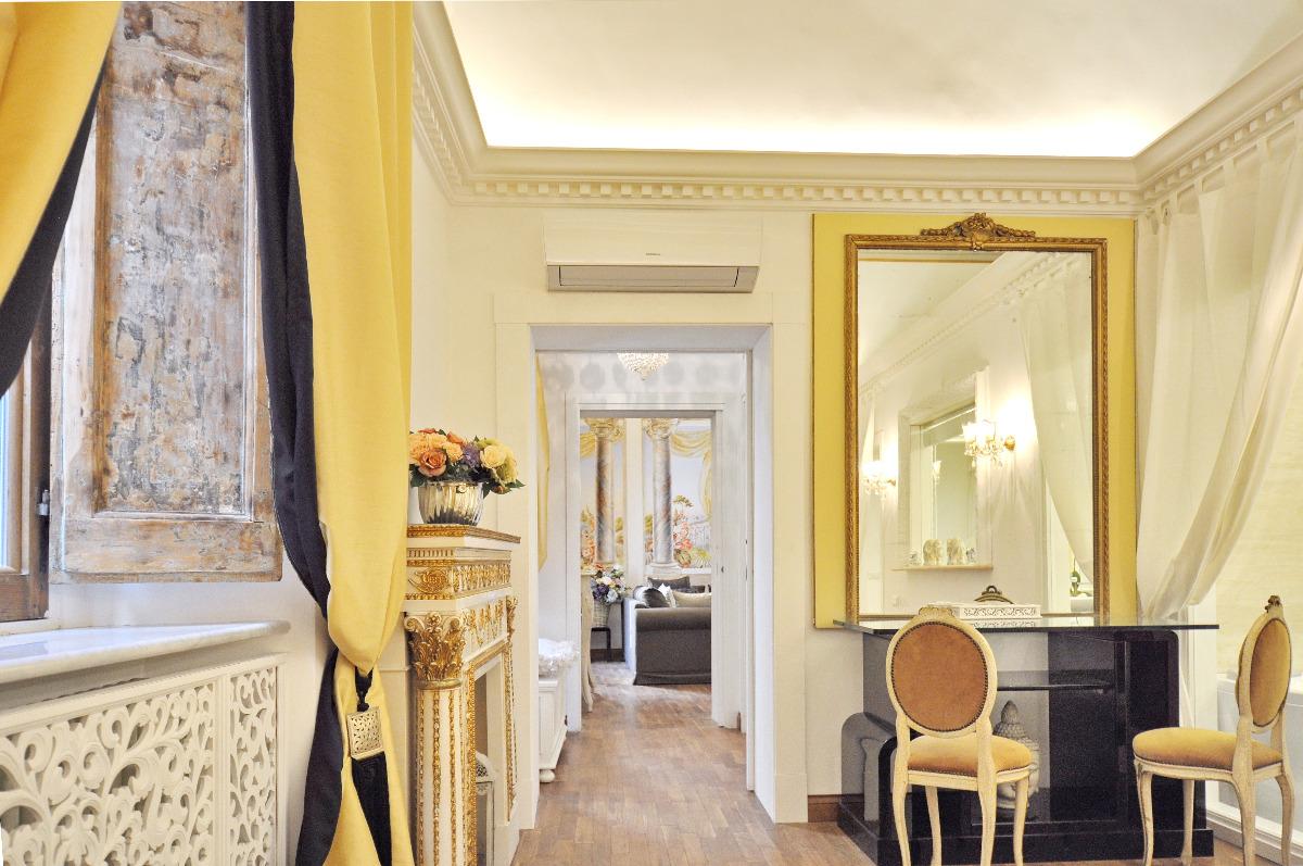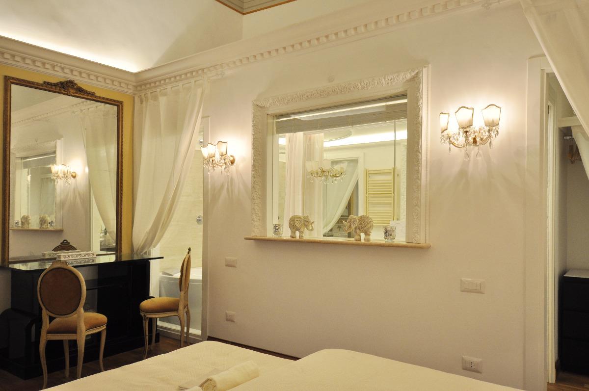 L'appartamento offre aria condizionata e WiFi gratuito, assicurando il massimo comfort in ogni stagione. Gli interni, eleganti e spaziosi, presentano un arredamento moderno e raffinato che crea un'atmosfera accogliente e lussuosa. I soffitti alti e la posizione tranquilla, nonostante la centralità, conferiscono all'ambiente un carattere di prestigio unico.