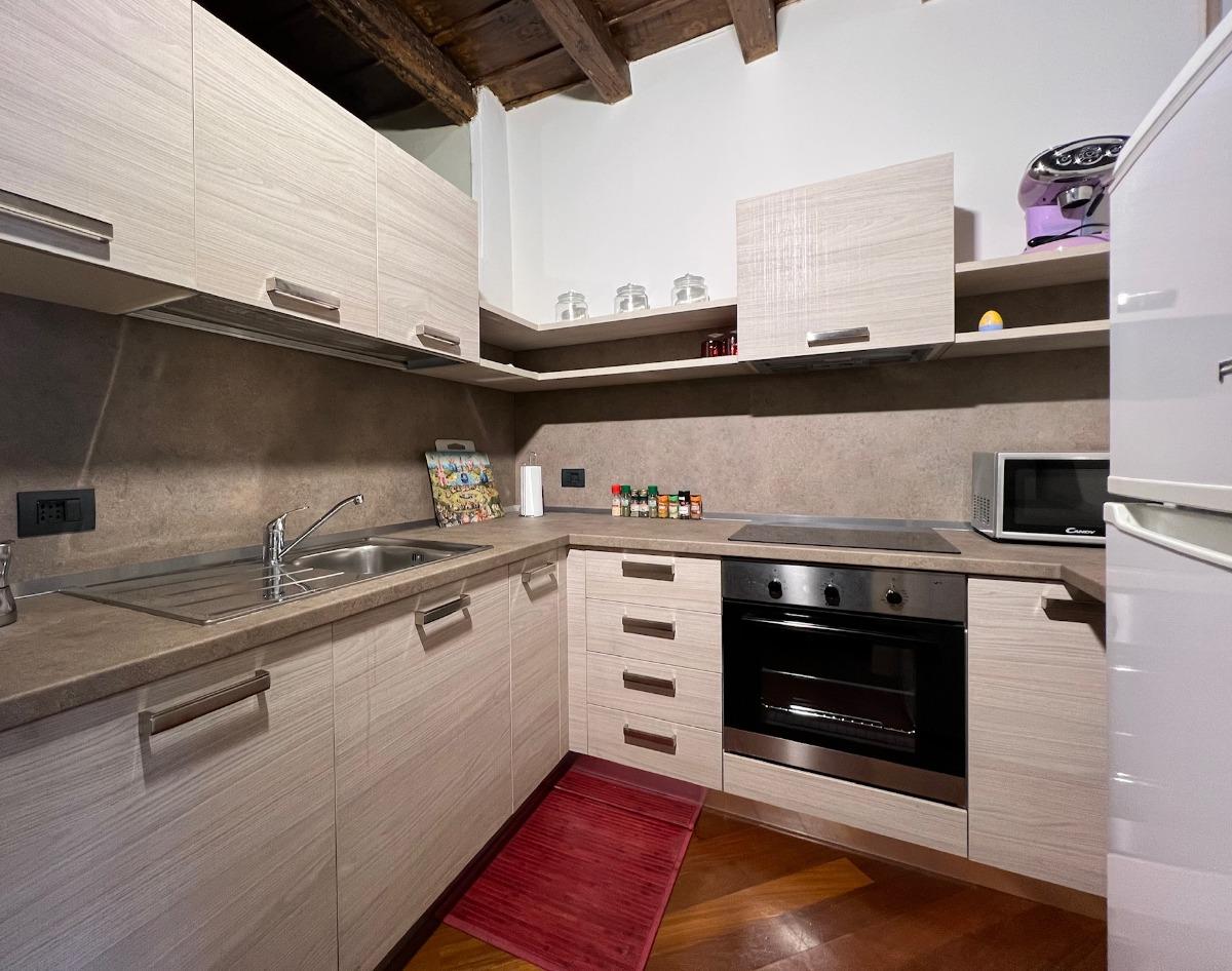 Subito dopo il bagno, scopriremo una cucina completamente attrezzata, che offre tutti i comfort necessari.
