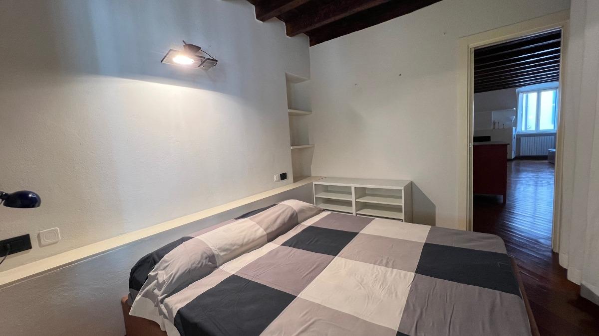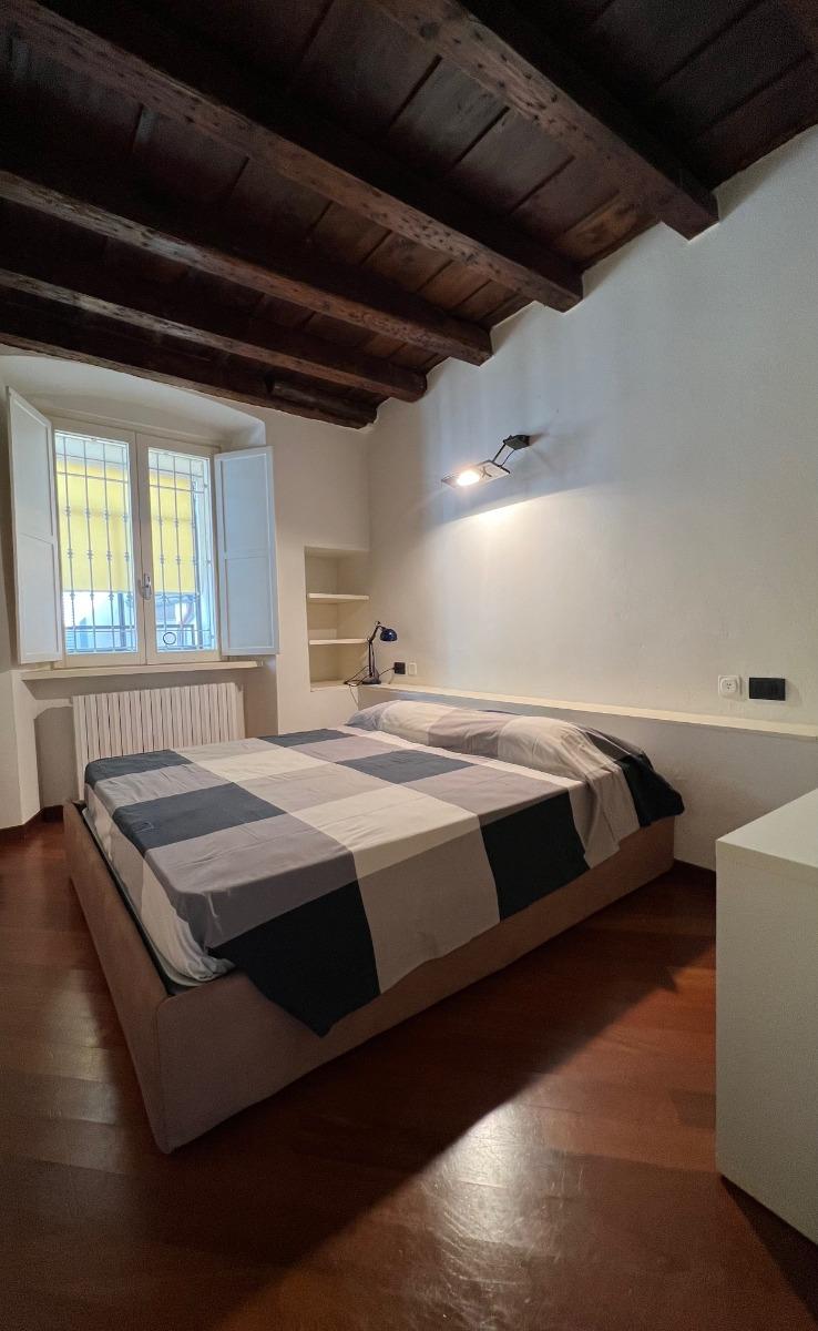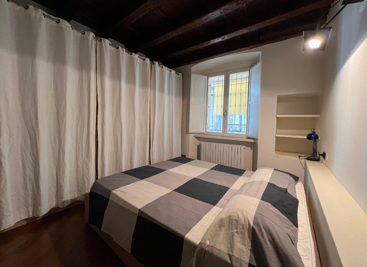 Una volta entrati nell'appartamento, sulla nostra sinistra troveremo una confortevole camera da letto, dotata di una finestra, un armadio, una cassettiera e un comodo letto matrimoniale.
