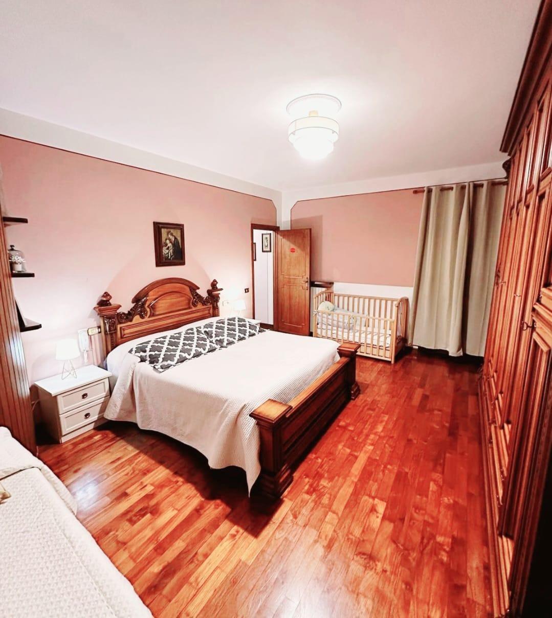 – une avec lit double, lit simple et un lit bébé à barreaux Foppapedretti,