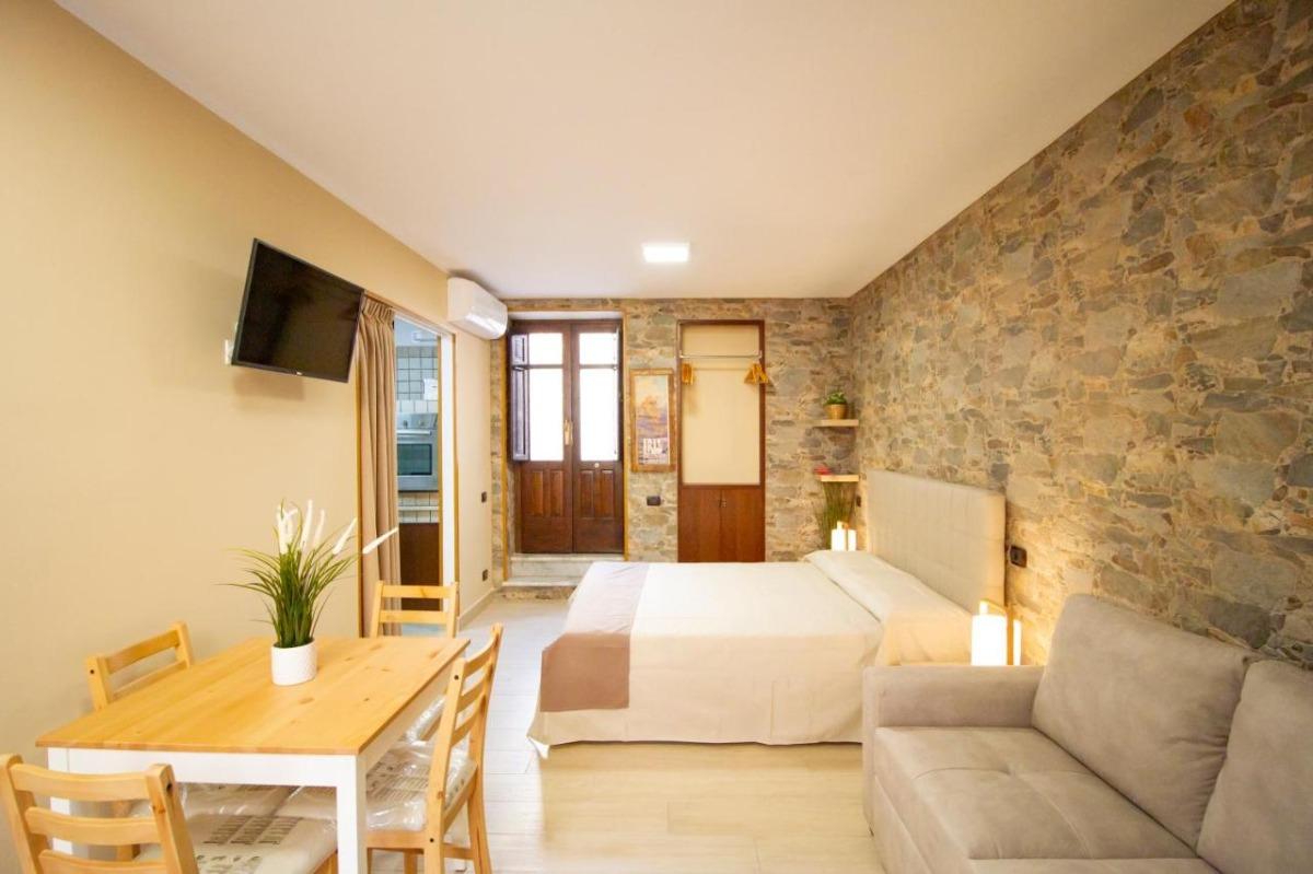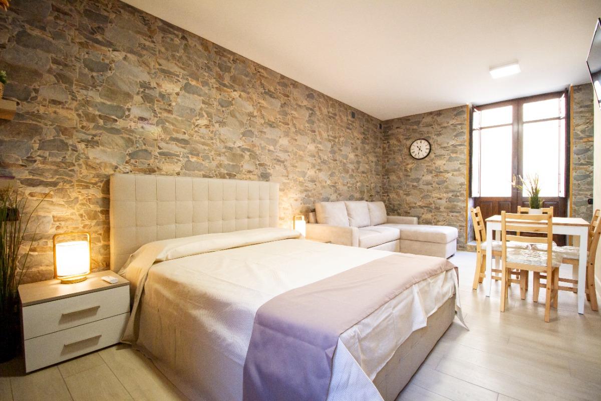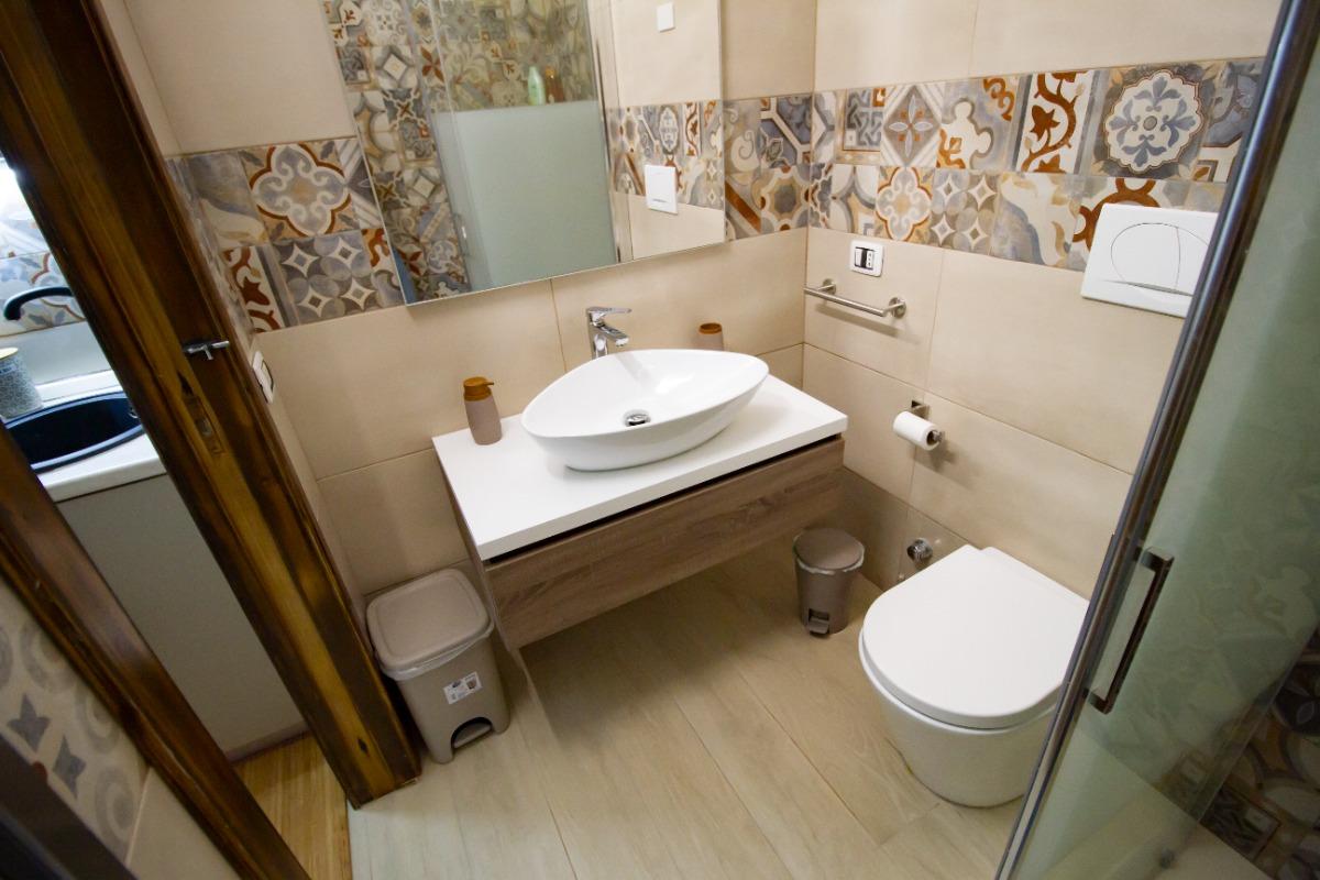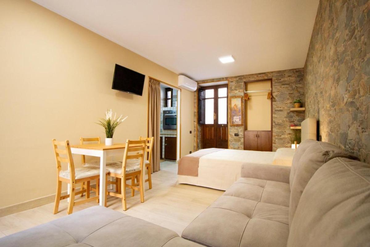 Les hébergements sont équipés d'une cuisine entièrement fonctionnelle, d'un coin salon avec télévision à écran plat et d'une salle de bain privative avec serviettes et peignoirs fournis. Les hôtes trouveront également un réfrigérateur, une cuisinière, une bouilloire et une machine à café pour un séjour agréable. La disposition intérieure comprend un vaste espace ouvert avec un salon éclairé par une grande fenêtre, une chambre principale et une seconde chambre avec un lit superposé pour trois personnes. Un couloir sépare la cuisine de la salle de bain, assurant une excellente organisation des espaces, tous modernes et soigneusement aménagés.