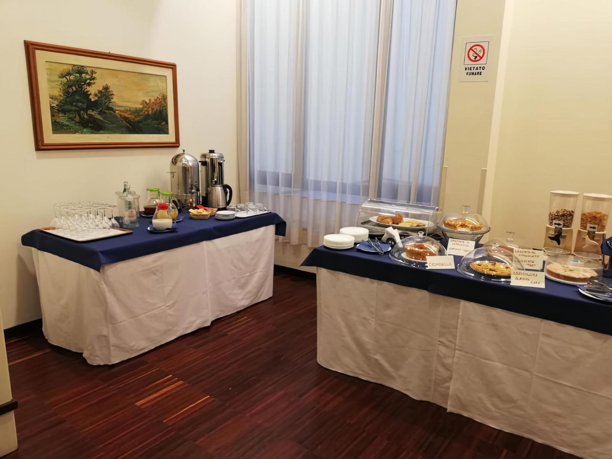 Der Tag beginnt mit einem reichhaltigen und vielfältigen Frühstück, das aufmerksam vom Personal serviert wird und hausgemachte Süßigkeiten, herzhafte Optionen, glutenfreie Auswahl und ein englisches Frühstück umfasst. Das Bistro des Hotels, das zu Mittag und Abend geöffnet ist, lädt dazu ein, die authentischen Aromen der traditionellen italienischen Küche zu entdecken, die mit frischen und regionalen Zutaten in einem einladenden und familiären Ambiente zubereitet wird.