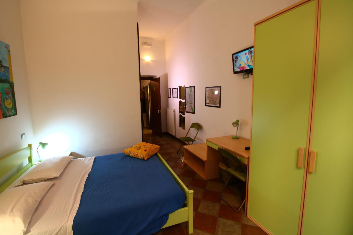 Camera singola (con letto singolo) con piccolo balcone con aria condizionata (caldo/freddo), tv e bagno in camera. Il riscaldamento è centralizzato con i contabilizzatori e la wi-fi è gratuita e presente in tutta la struttura. Il secondo letto singolo si estrae da sotto il primo.