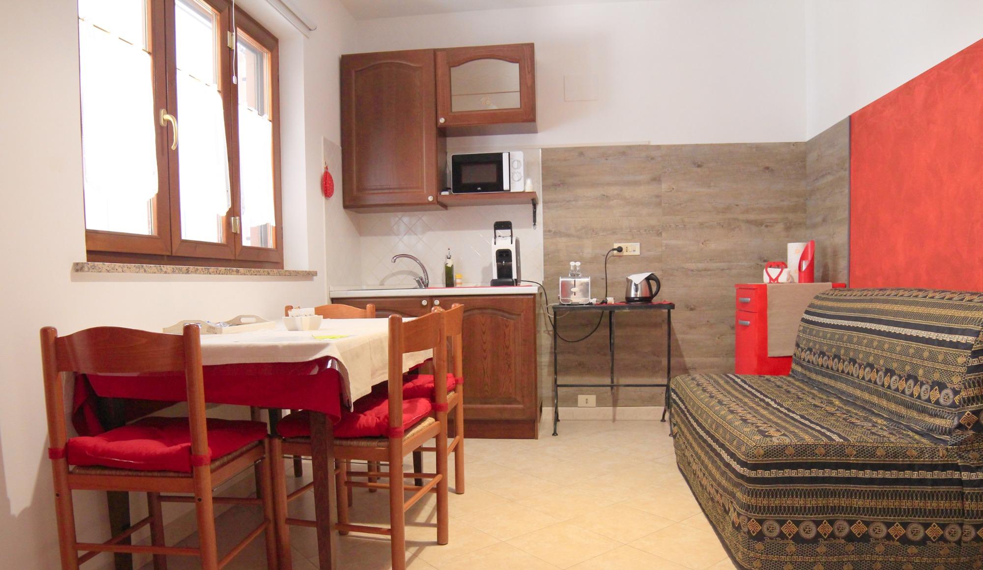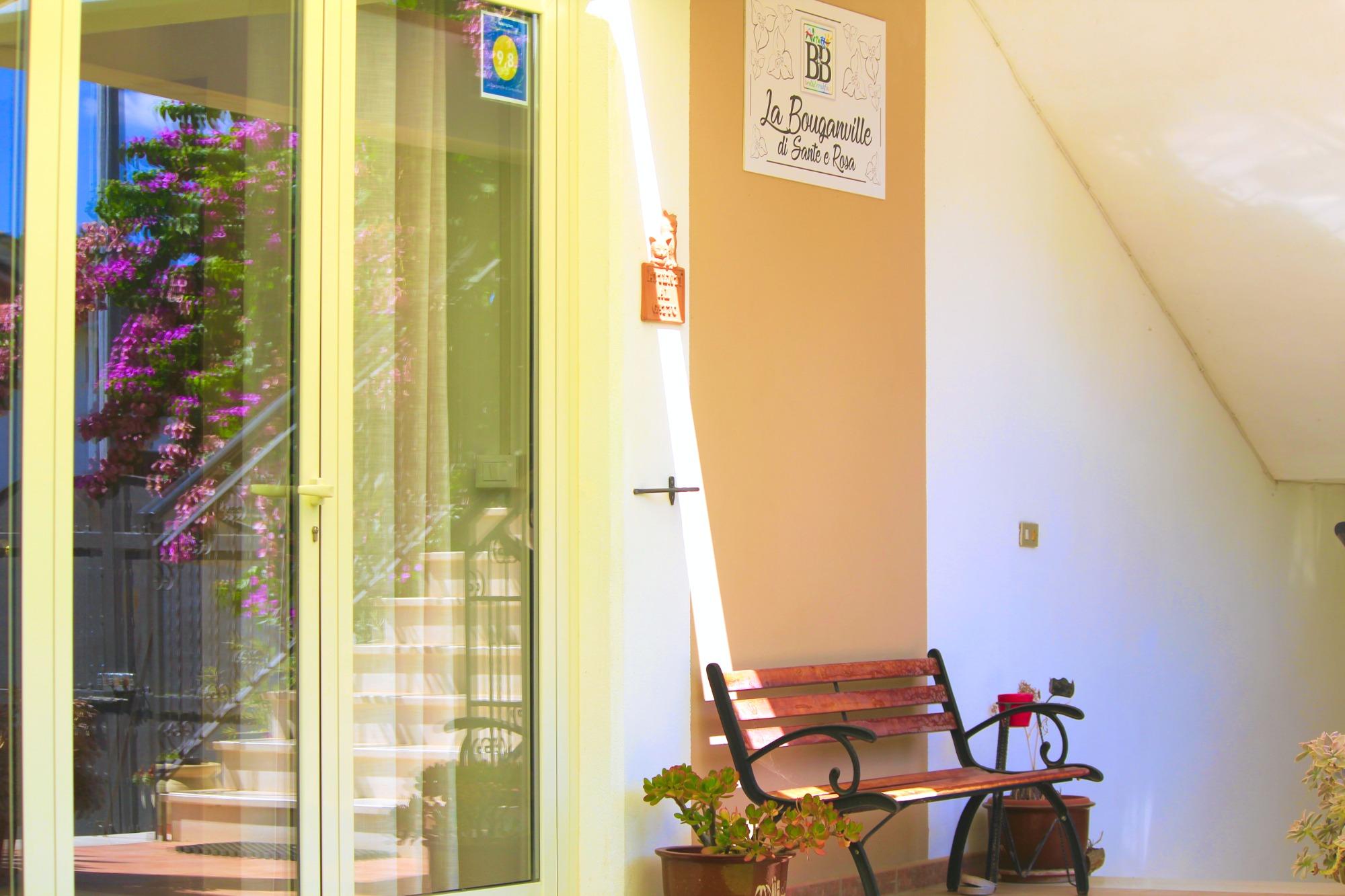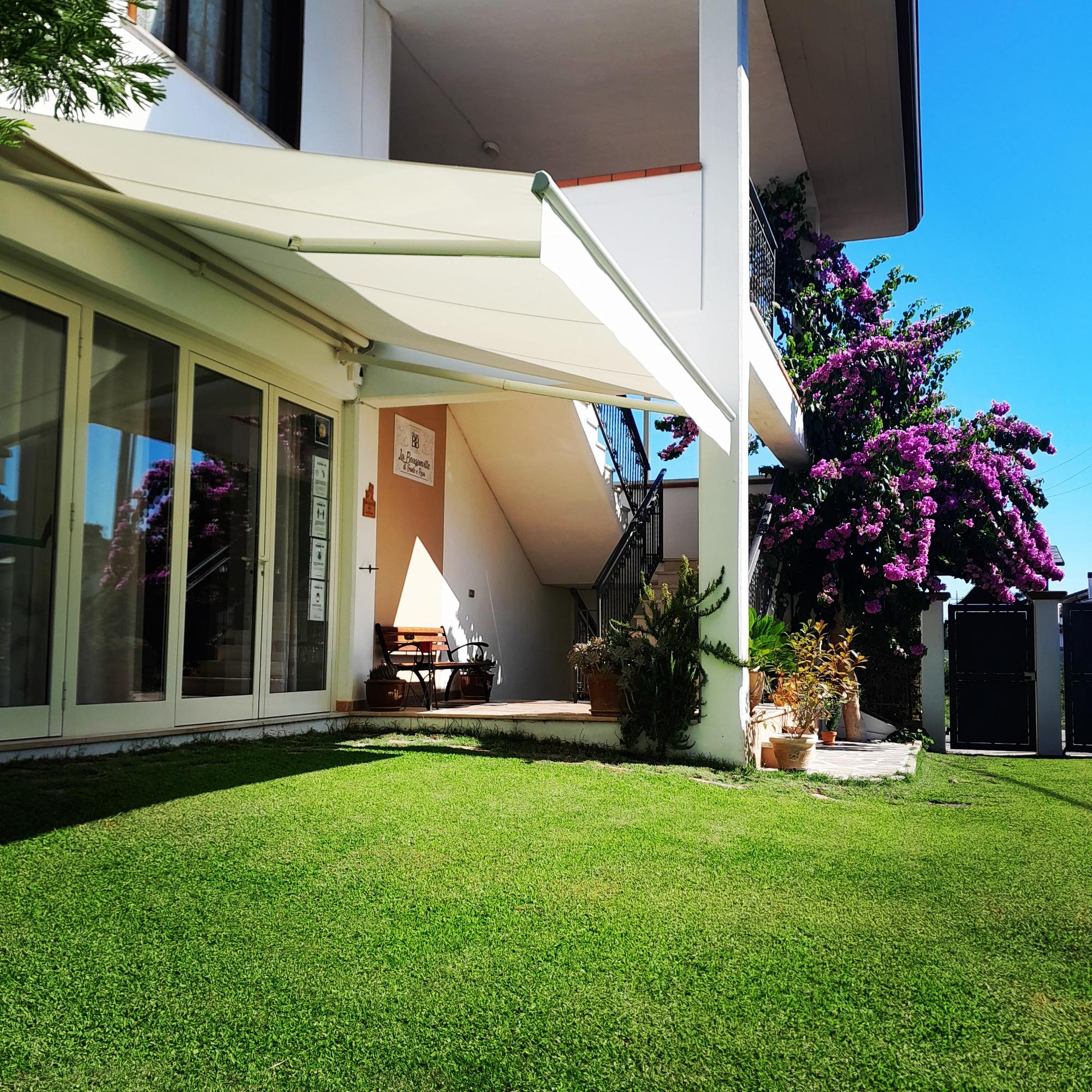 Ein besonderes Highlight des B&B ist die große Veranda mit Blick auf den Garten: Hier können die Gäste im Freien entspannen, umgeben von der Ruhe und der Schönheit der majestätischen Bougainvillea, die dem Haus seinen Namen gibt. Außerdem gibt es einen Wohnbereich mit einer ausgestatteten Ecke, die mit Spüle, Kühlschrank, Mikrowelle, Kaffeemaschine mit Kapseln, Toaster und Wasserkocher ausgestattet ist, perfekt für kleine alltägliche Bedürfnisse.
