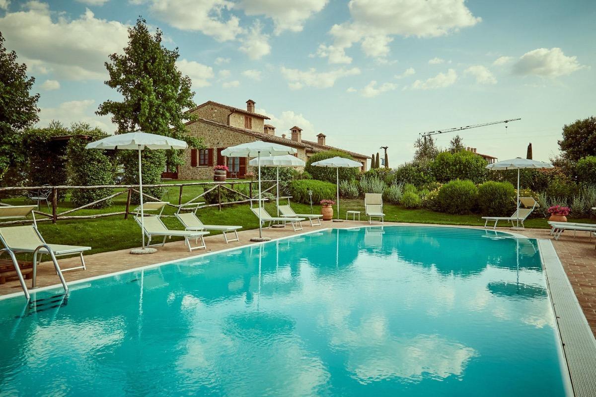 The two structures have a total of ten cozy, spacious, and comfortable apartments. They are furnished with typical antique Tuscan-style furniture, with exposed beams and bricks, terracotta floors, and travertine balconies, preserving the flavor of the past while offering all the comforts of today, including air conditioning, satellite TV, rustic fireplaces, and a beautiful swimming pool with a valley view.
