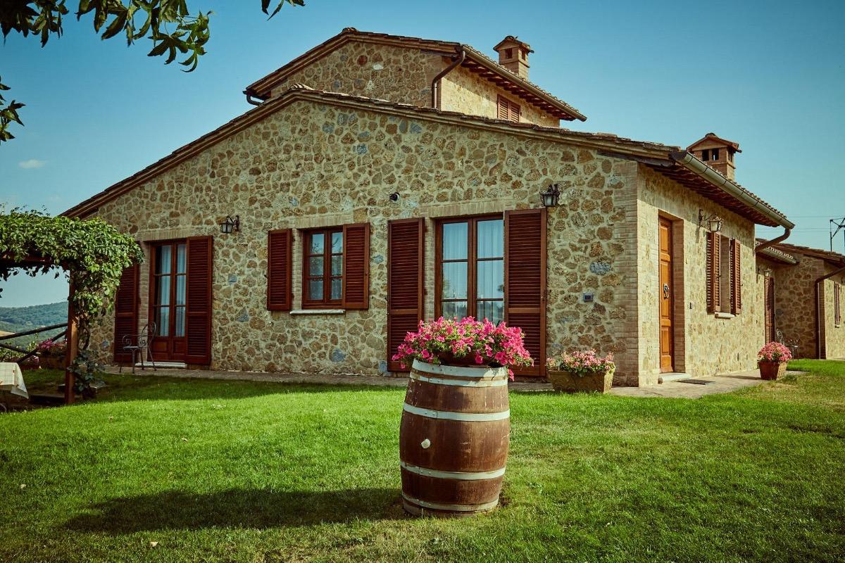 The name of the farmhouse comes from the homonymous estate overlooking the gentle hills of the Val d'Orcia, a place recognized by UNESCO as an Artistic, Natural, and Cultural Park. Here, the landscape is dominated by erosion phenomena that showcase the gray clay soil, creating the famous "lunar landscape" of the Crete Senesi.