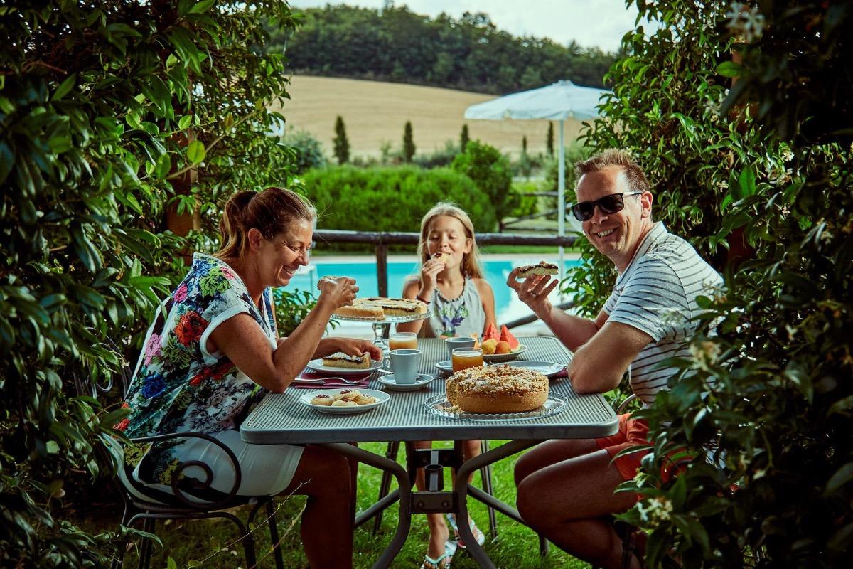 It will be a real pleasure to wake up in the morning knowing that a variety of fresh and genuine delicacies await you, all carefully prepared by Laura and Marisa. You can delight your palate with homemade soft sweet cakes, different every morning, or savor the fragrant rosemary and stracchino focaccias, perfect to accompany tasty Tuscan cured meats such as ham, salami or capocollo, or even taste cheeses like the walnut leaf-aged pecorino, the black pepper or truffle ones. If you prefer, you can also opt for the classic Italian breakfast with toast, butter and jam produced directly by the company, to be enjoyed with a creamy cappuccino.