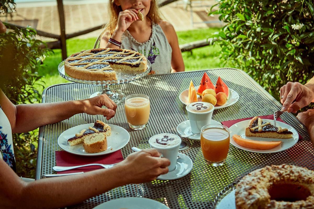 Every day, we welcome our guests with a delightful buffet breakfast that offers a variety of handmade delicacies, directly sourced from our company. You can savor the freshness of our seasonal fruit, the sweetness of syrupy fruit, creamy yogurt, and our tasty jam, perfect to pair with freshly toasted bread. You will be delighted by fruit juices, crispy cornflakes, and the many surprises that await you every morning, such as our famous and fluffy homemade cakes, sandwiches accompanied by cold cuts or cheeses, or our delicious eggs and tomato pizzas. Additionally, we will be pleased to serve you your preferred creamy cappuccinos, espresso coffees, teas, or American coffees.