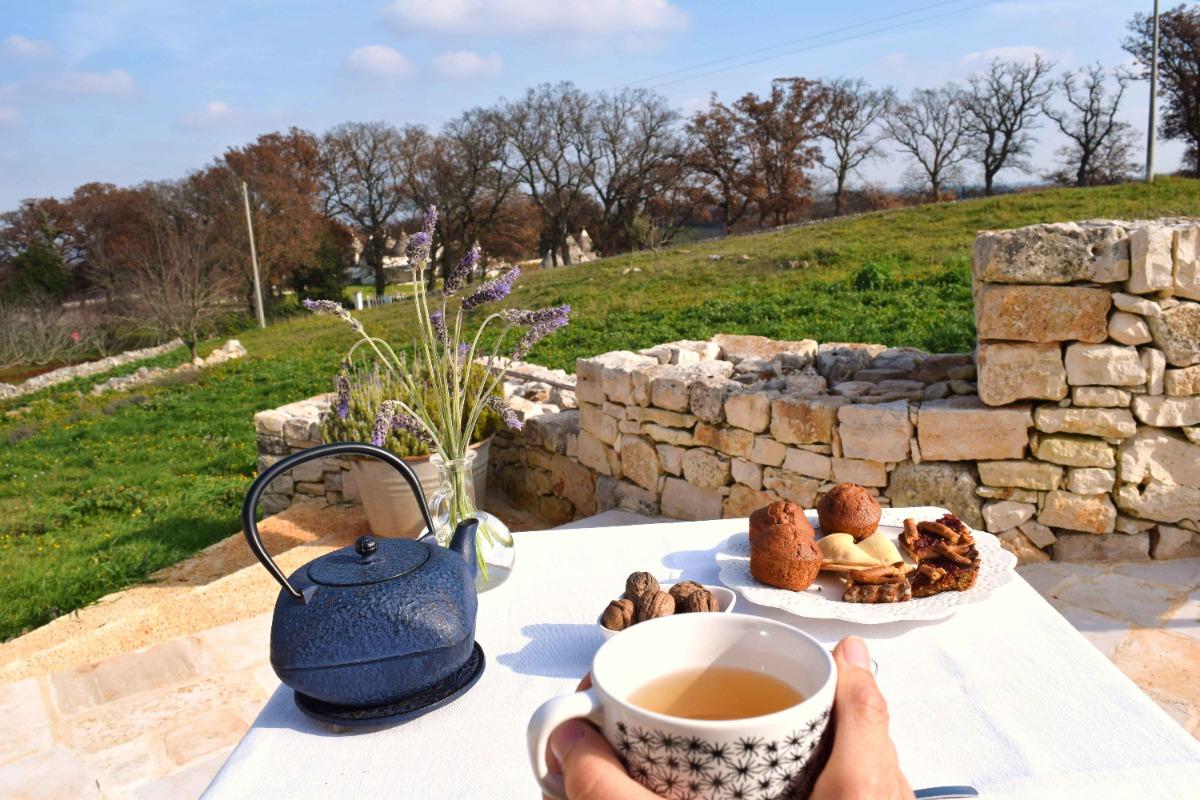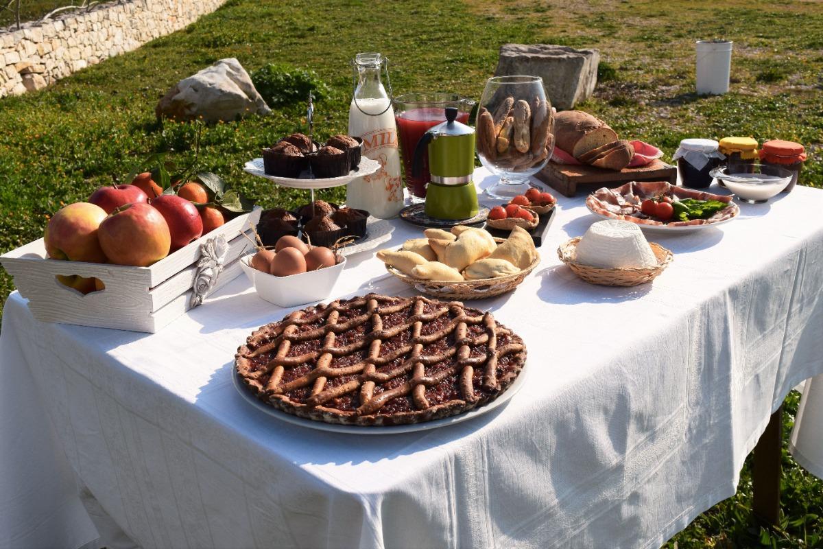Delicious and plentiful breakfast with a variety of sweet and savory options, all made with local organic products. Our baked goods, such as bread and pastries, are prepared with organic flours made from ancient grains, such as Senator Cappelli and Maiorca. Additionally, we offer fresh dairy products, Martina Franca capocollo, and milk from nearby livestock farms.
