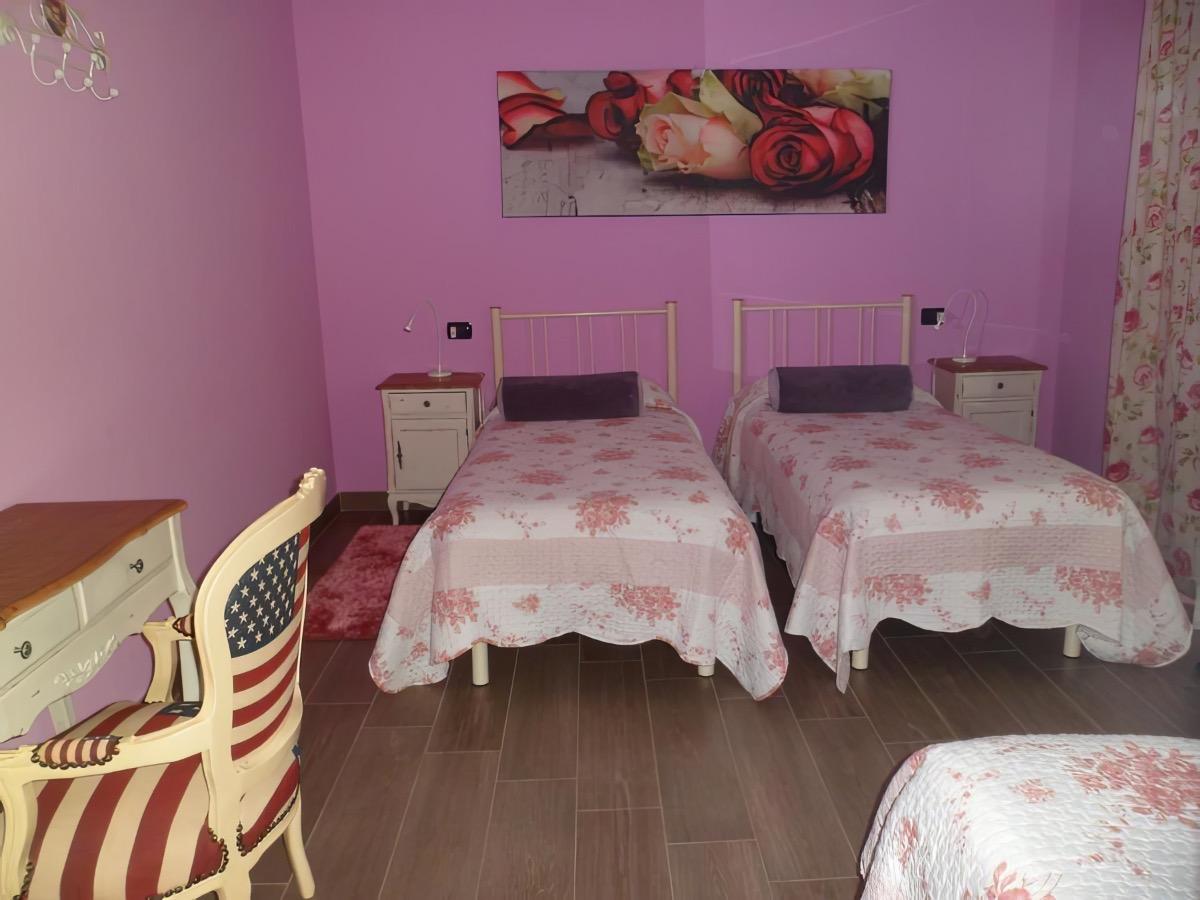 Abbiamo quattro diverse stanze a disposizione per voi. La Camera Margherita è perfetta per una persona o una coppia, con una cucina e un bagno privato. Si trova al piano terra e ha un ingresso indipendente dal giardino. Al primo piano, troverete la Camera Rosa, che può ospitare fino a tre persone con i suoi tre letti singoli. Questa stanza dispone anche di un ampio bagno privato. La Camera Viola è ideale per una famiglia, con un letto matrimoniale e un letto a castello. È perfetta per due adulti e due bambini. Inoltre, c'è un piccolo salottino e un bagno con cabina doccia. Nel sottotetto, abbiamo la Camera Erica, con un letto matrimoniale, un ampio bagno e un grazioso terrazzino. Tutte le stanze sono dotate di frigorifero e connessione wifi gratuita.