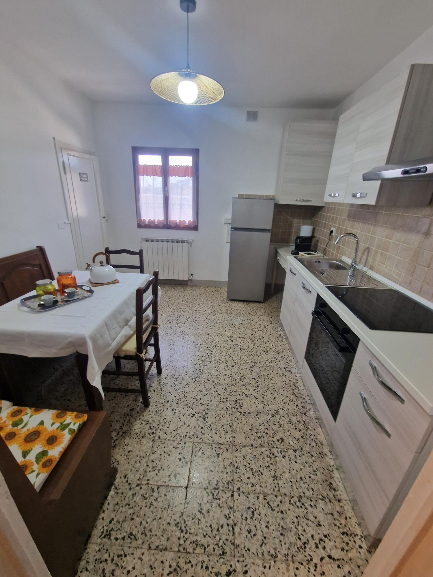 All’interno vi aspettano ambienti curati e confortevoli: una cucina attrezzata con zona pranzo, un salotto con divano letto, un bagno con doccia e una camera matrimoniale illuminata dalla luce naturale che entra dalle finestre affacciate sulla piazza. Gli arredi sono stati recentemente rinnovati, mantenendo intatti elementi originali come i pavimenti in cotto, che raccontano la storia della casa e del territorio.