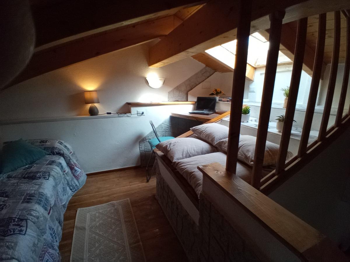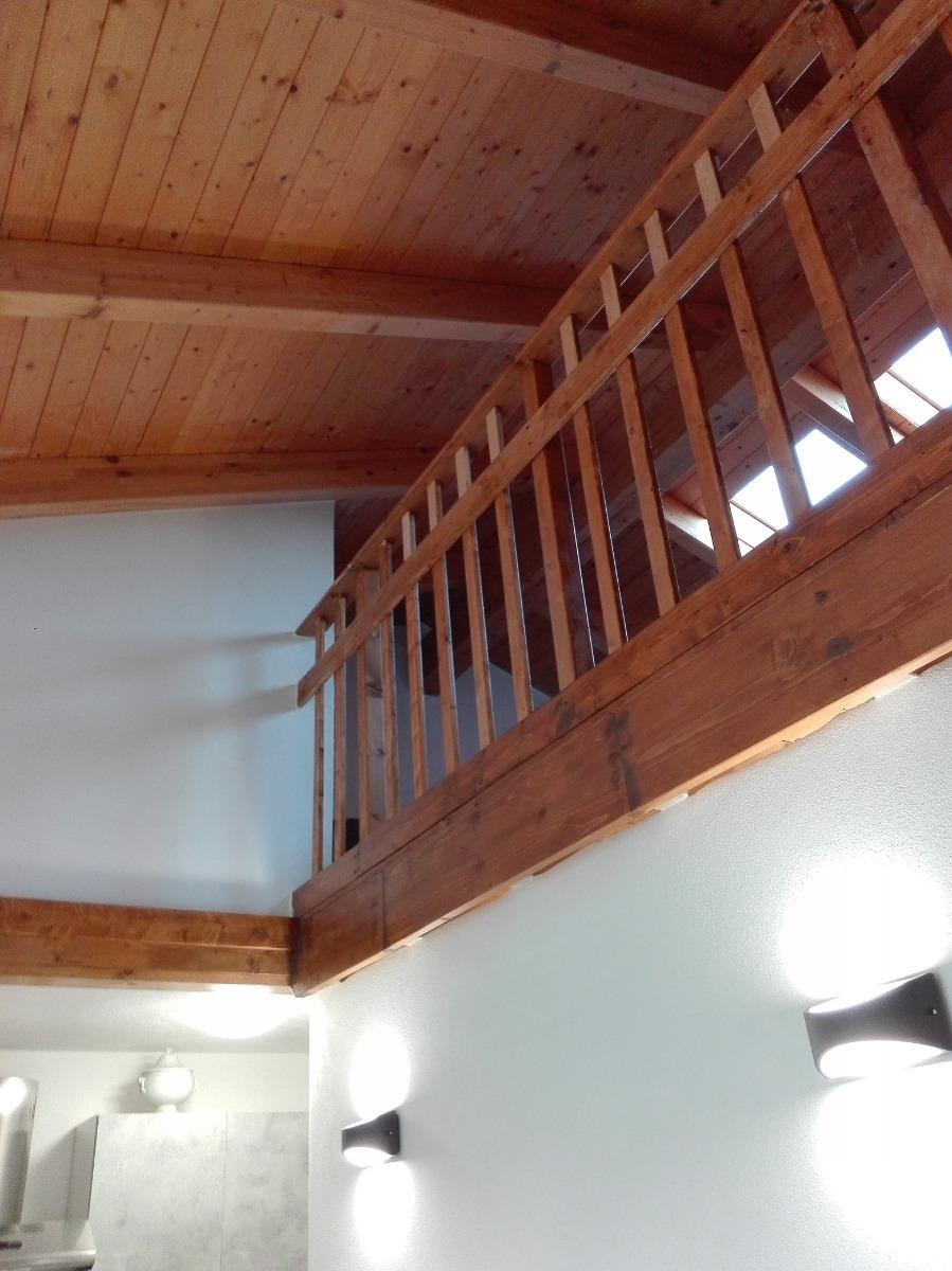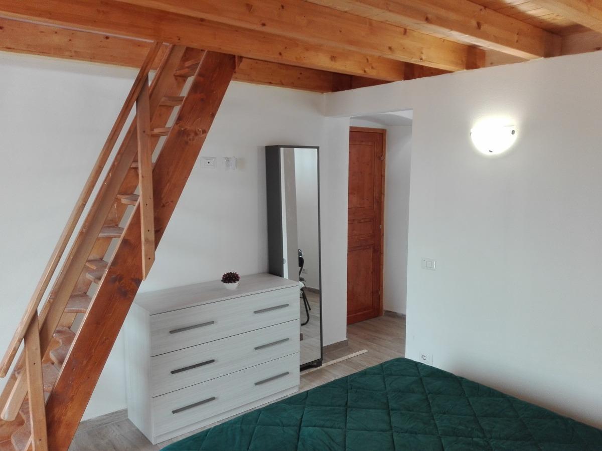 L'alloggio B così costituito: parete cucina attrezzata con zona pranzo, camera con letto matrimoniale, soppalco con letto singolo, angolo scrittura/lettura, bagno privato con doccia, aria condizionata e Wi-Fi.
