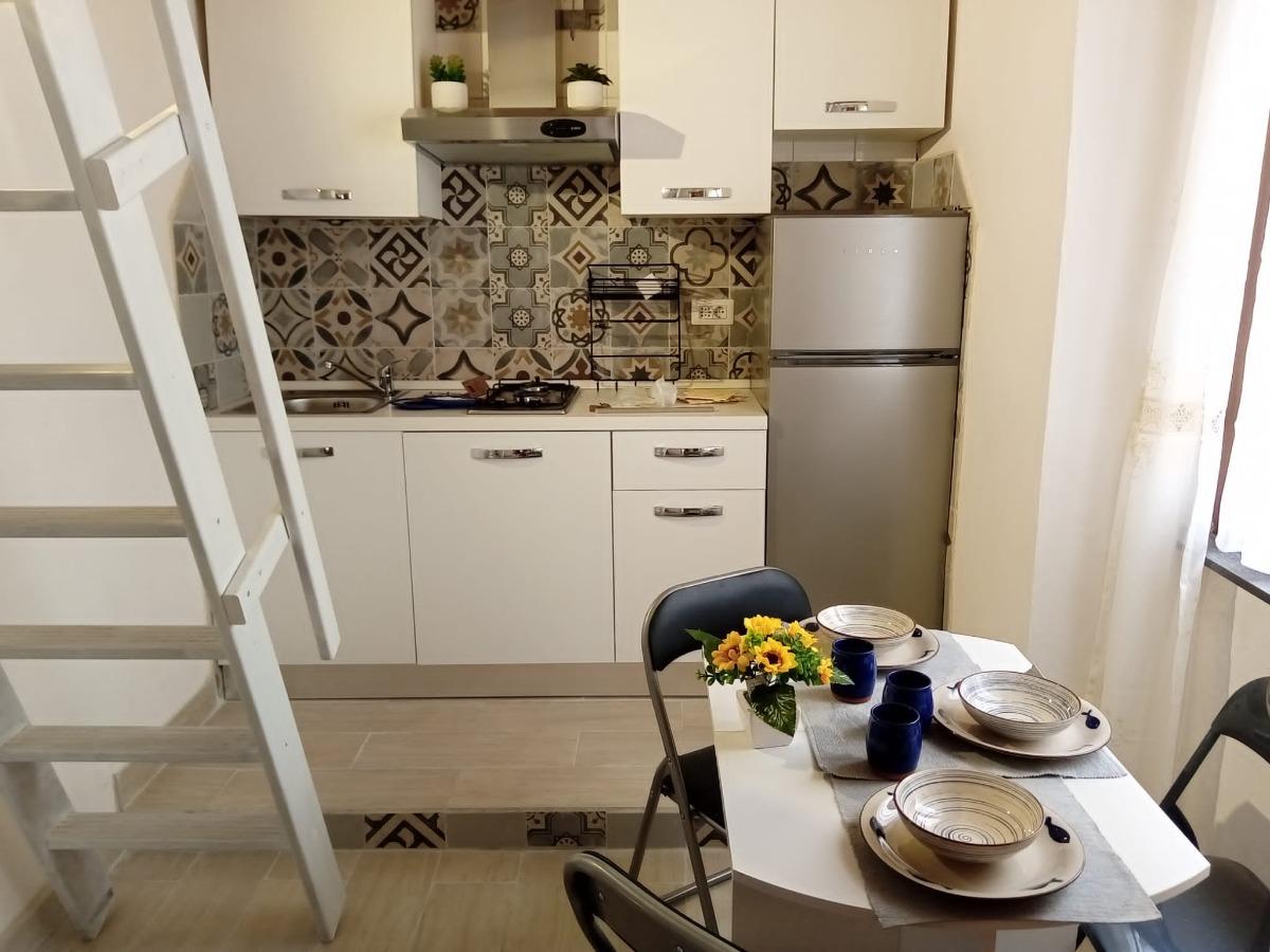 L’alloggio A così costituito: zona pranzo, angolo cottura, camera da letto matrimoniale, bagno, soppalco con seconda camera matrimoniale o predisposizione per due letti singoli, ampia terrazza per colazione e cene. Aria condizionata e Wi-Fi.