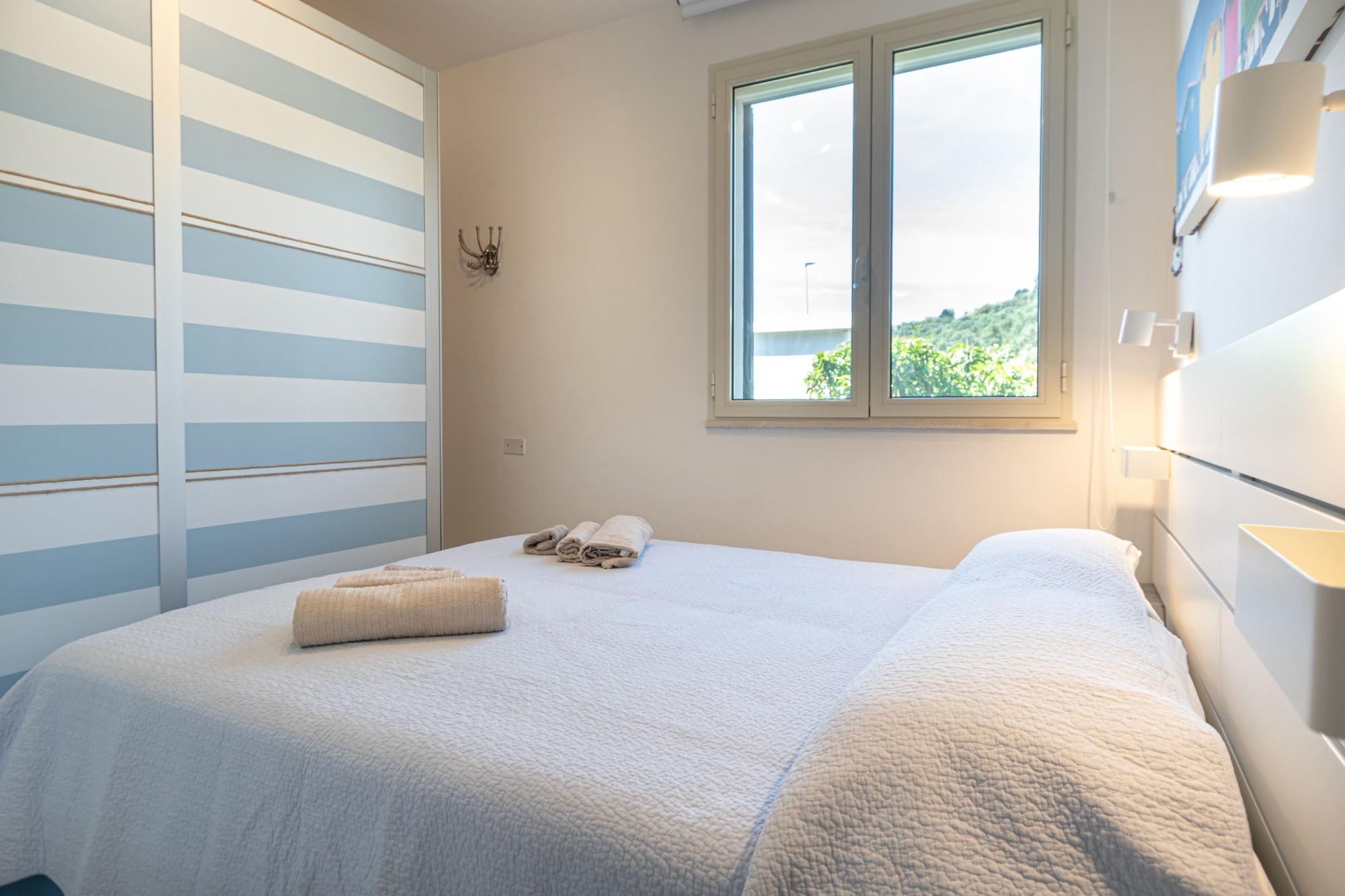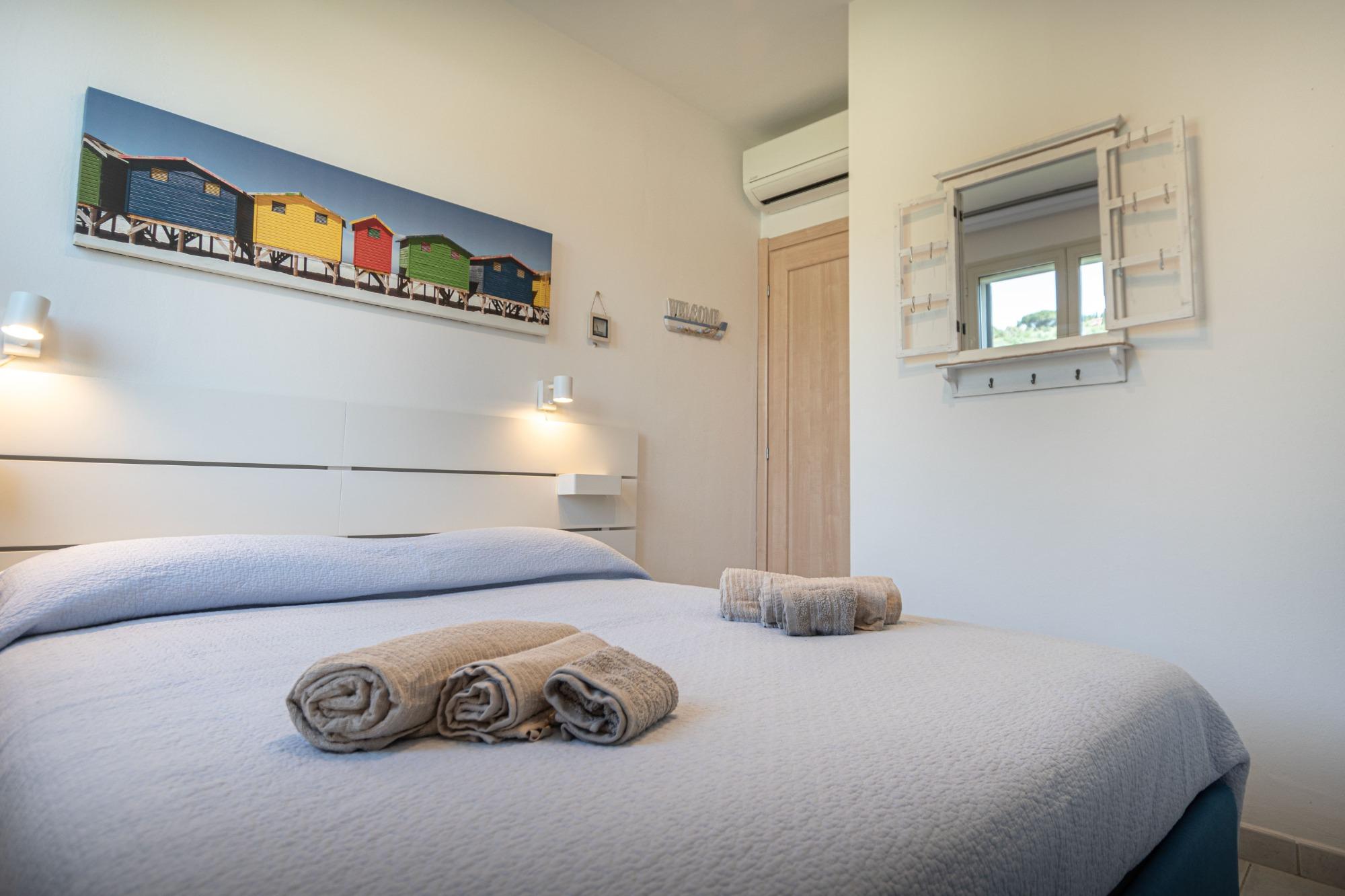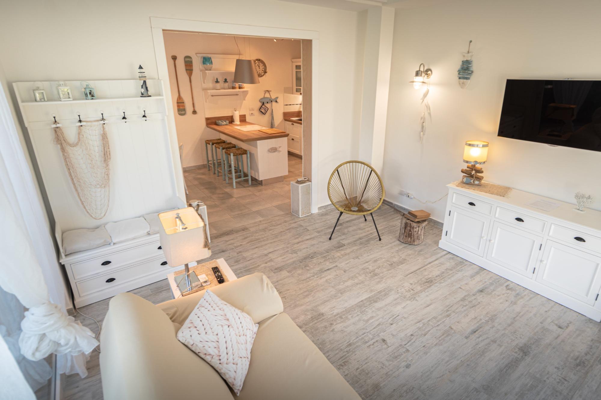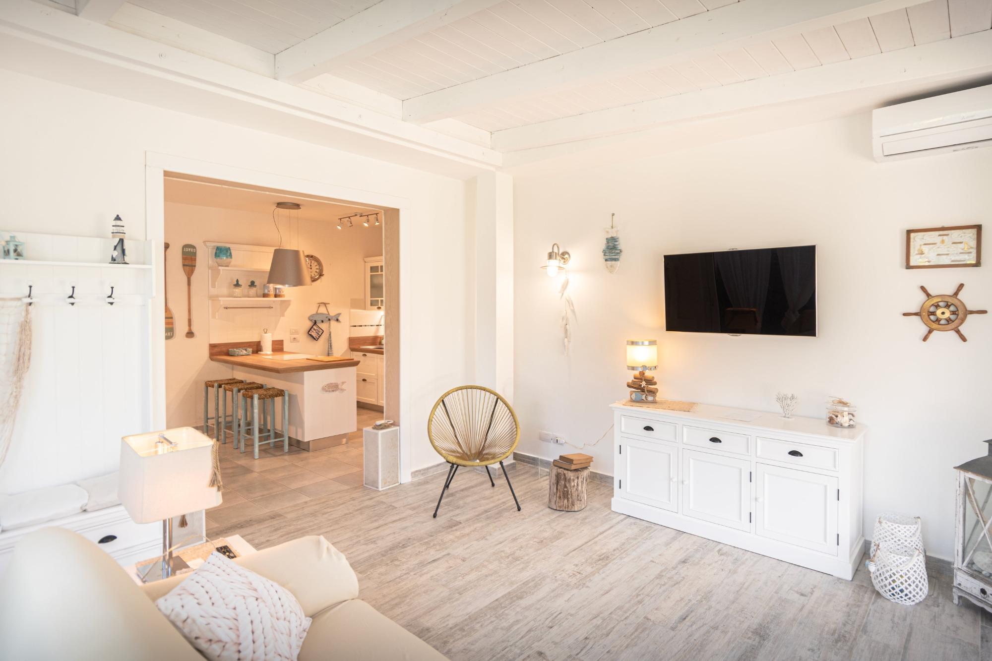 Los espacios interiores son luminosos y están bien organizados: la zona de estar incluye una sala con sofá, TV y Wi-Fi, junto a una cocina totalmente equipada. La zona de descanso cuenta con dos habitaciones, una matrimonial y una doble, con un total de cuatro camas, lo que hace que la casa sea adecuada tanto para familias como para parejas.