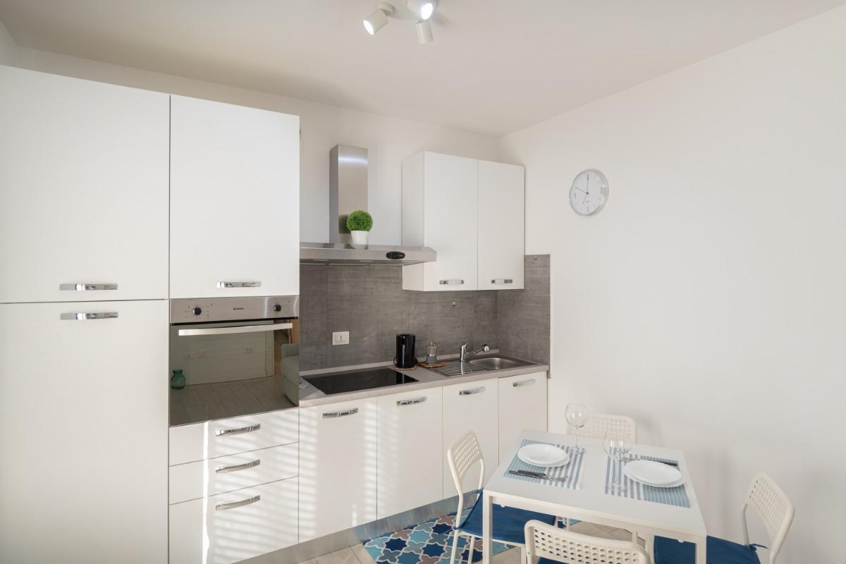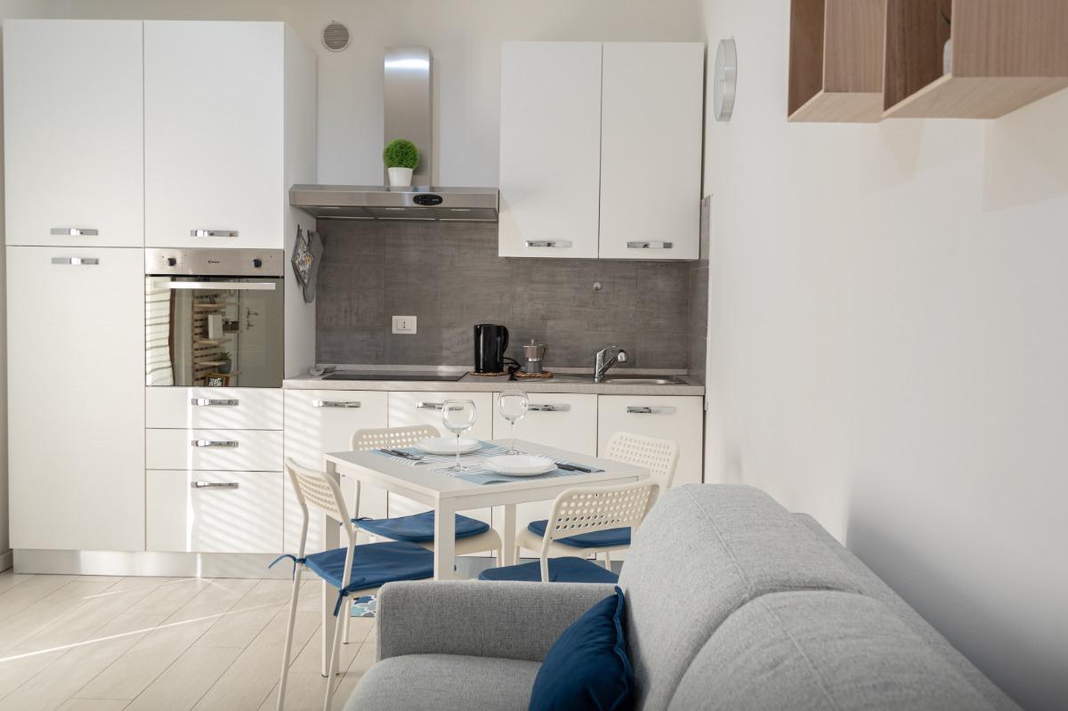 • Una cucina completamente attrezzata con fornelli a induzione, forno e frigorifero