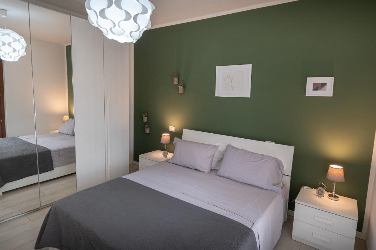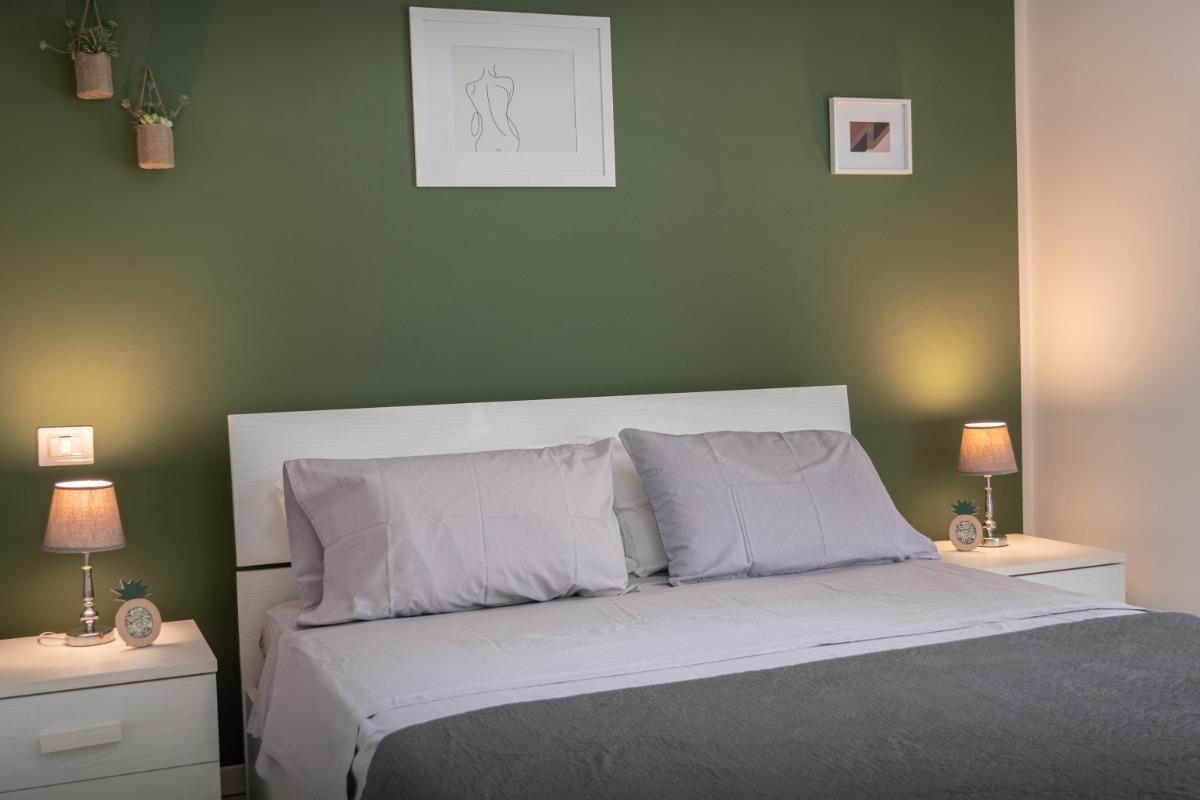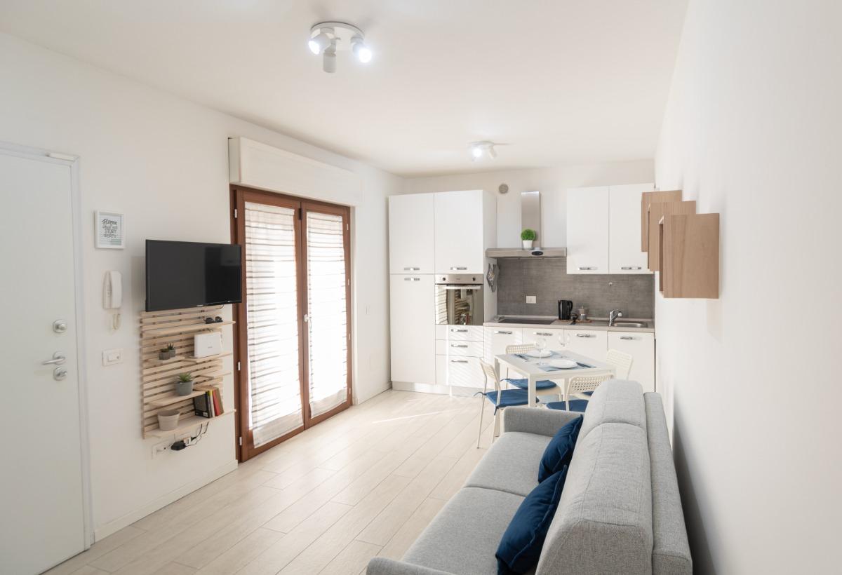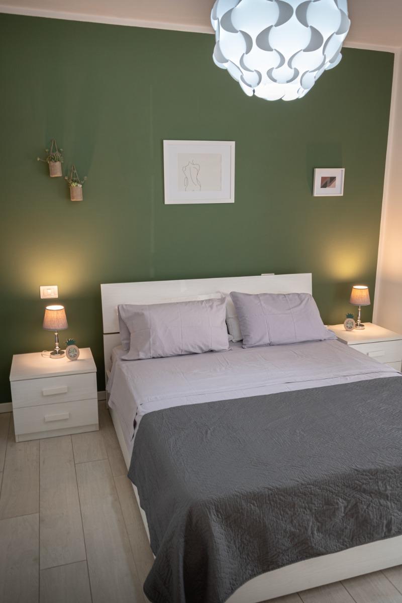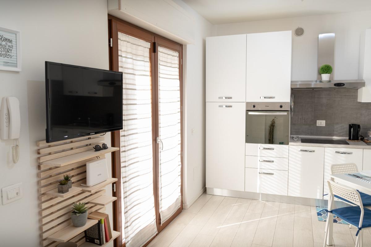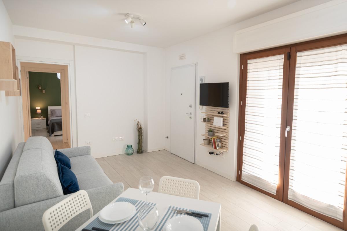 Nel nostro accogliente alloggio, troverete una camera con un letto matrimoniale comodo e un pratico divano letto per una notte di riposo rilassante. Il soggiorno è dotato di una cucina completamente attrezzata e una Smart-TV, per offrirvi momenti di relax e divertimento durante il vostro soggiorno.