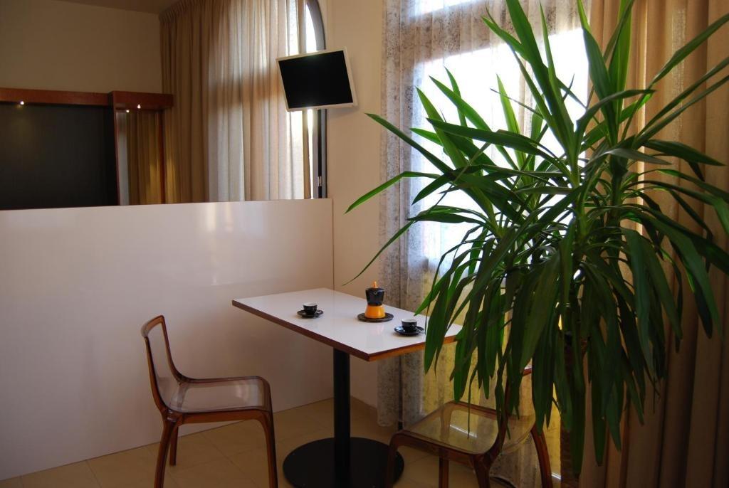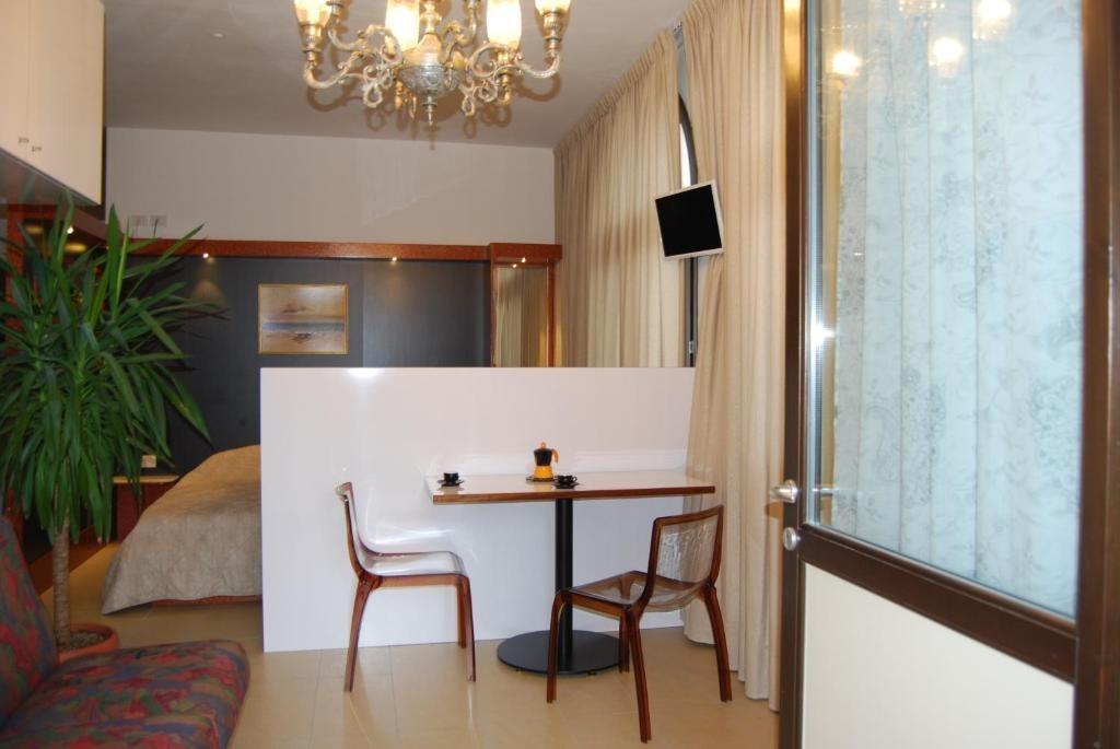 Il piacevole soggiorno è arredato con un tavolo e sedie per goderti i pasti.