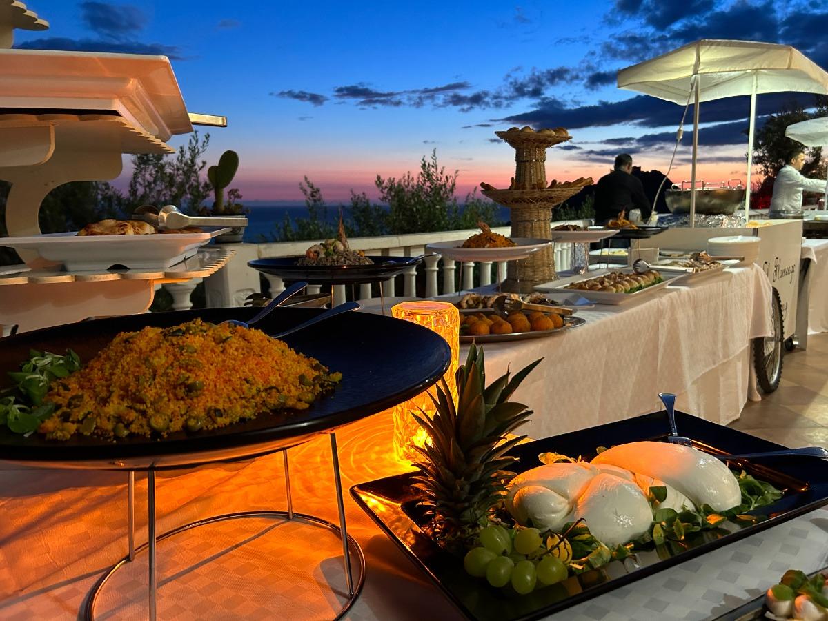 Every morning, guests can enjoy a hearty breakfast on the terrace overlooking the sea, savoring traditional Mediterranean products in a unique setting.