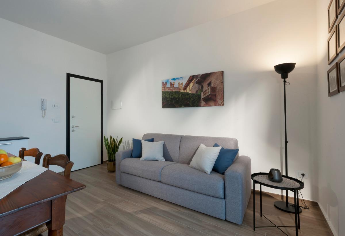 Le logement se trouve au cœur du pittoresque village de Cavalcaselle, un charmant hameau de Castelnuovo del Garda, entouré de magnifiques paysages verdoyants, avec de luxuriants oliveraies et vignobles. À seulement deux kilomètres, se trouve le magnifique lac de Garde, ainsi que les célèbres parcs à thème de Gardaland, Caneva World et Parco Natura Viva. Cet appartement spacieux est idéal pour des vacances placées sous le signe du divertissement et de la détente, mais également pour les voyages d'affaires. Il comprend un grand salon moderne avec coin cuisine, une confortable chambre double et une salle de bains.