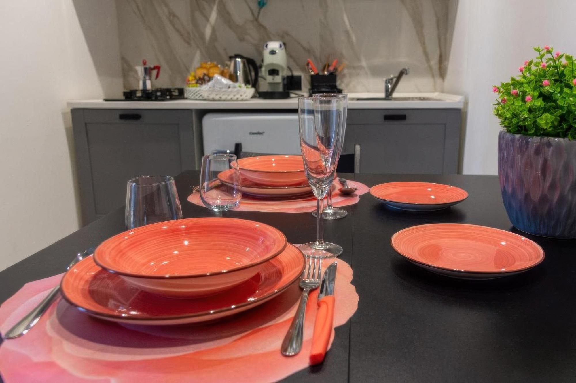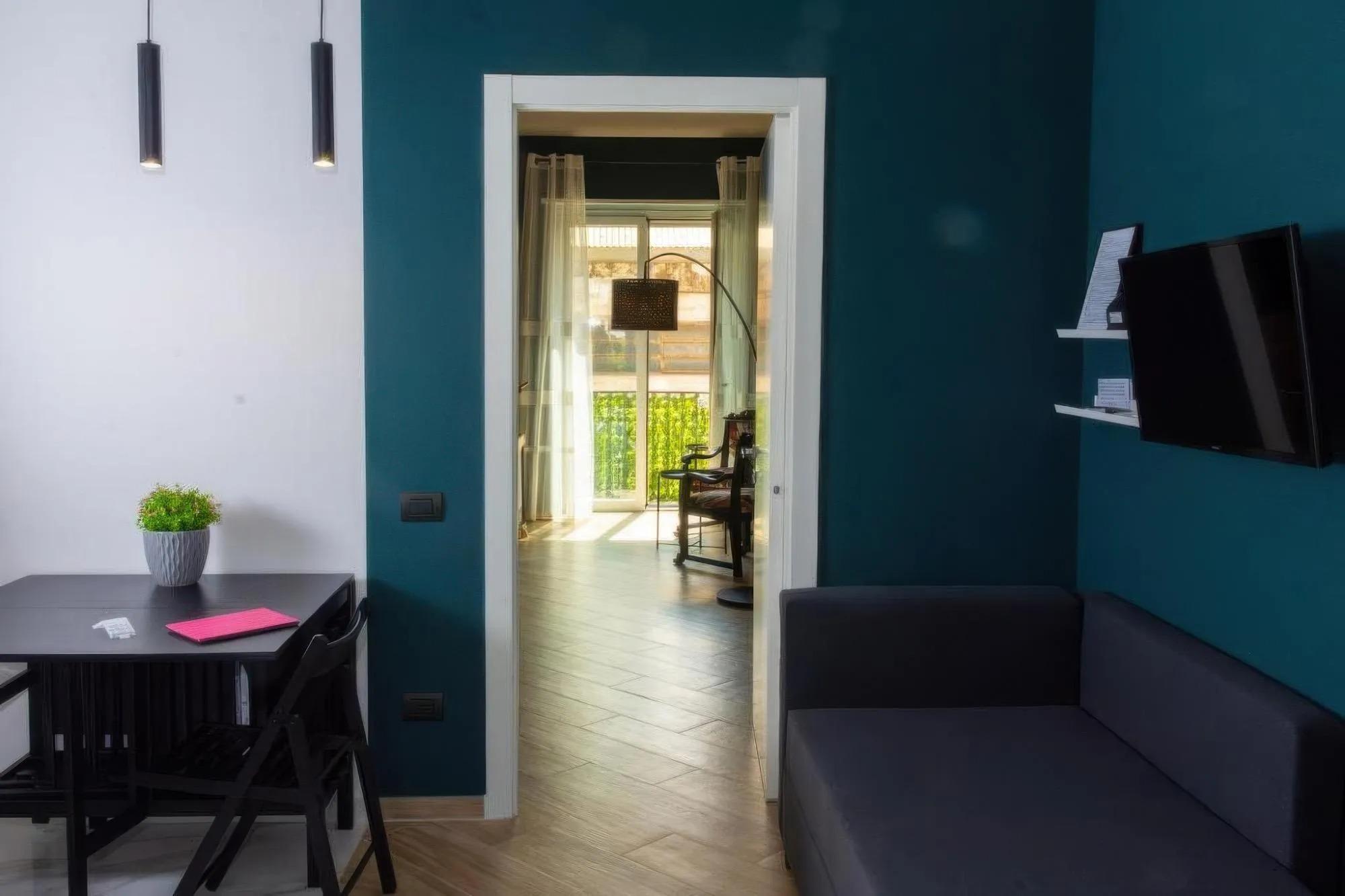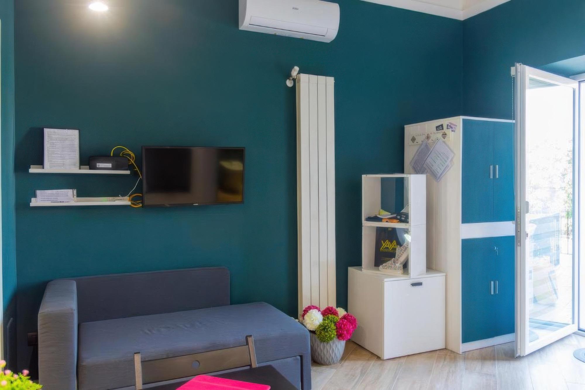 Die Corte di Poppea ist eine gemütliche und gepflegte Wohnung, die sich im ersten Stock eines historischen Gebäudes aus dem späten 19. Jahrhundert befindet. Sie liegt in einer ruhigen Umgebung, die zur Entspannung einlädt, und dennoch in einer äußerst strategischen Lage. Nur zwei Gehminuten entfernt befinden sich die archäologischen Ausgrabungen von Oplonti - Villa di Poppea, ein außergewöhnliches Zeugnis der römischen Geschichte. Die nahegelegene Circumvesuviana-Station ermöglicht es, bequem zu einigen der bekanntesten Ziele in Kampanien zu gelangen, wie Napoli, Ercolano und die Ausgrabungen von Pompeji, die nur 2,5 km entfernt sind. Auch Sorrent ist sowohl mit dem Zug als auch mit dem Auto schnell zu erreichen.