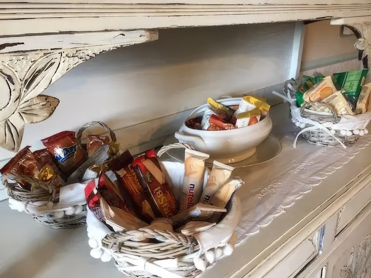 Hot beverage vending machine. You will find a wide selection of individually packaged snacks, crackers, jams, honey, and spreadable chocolate cream. Additionally, there will always be a delicious homemade cake and artisanal cookies that vary depending on the season. You can also enjoy yogurt and spreadable butter. For thirst and freshness, we offer orange juice and mineral water. Lastly, every morning freshly baked mini croissants are prepared.