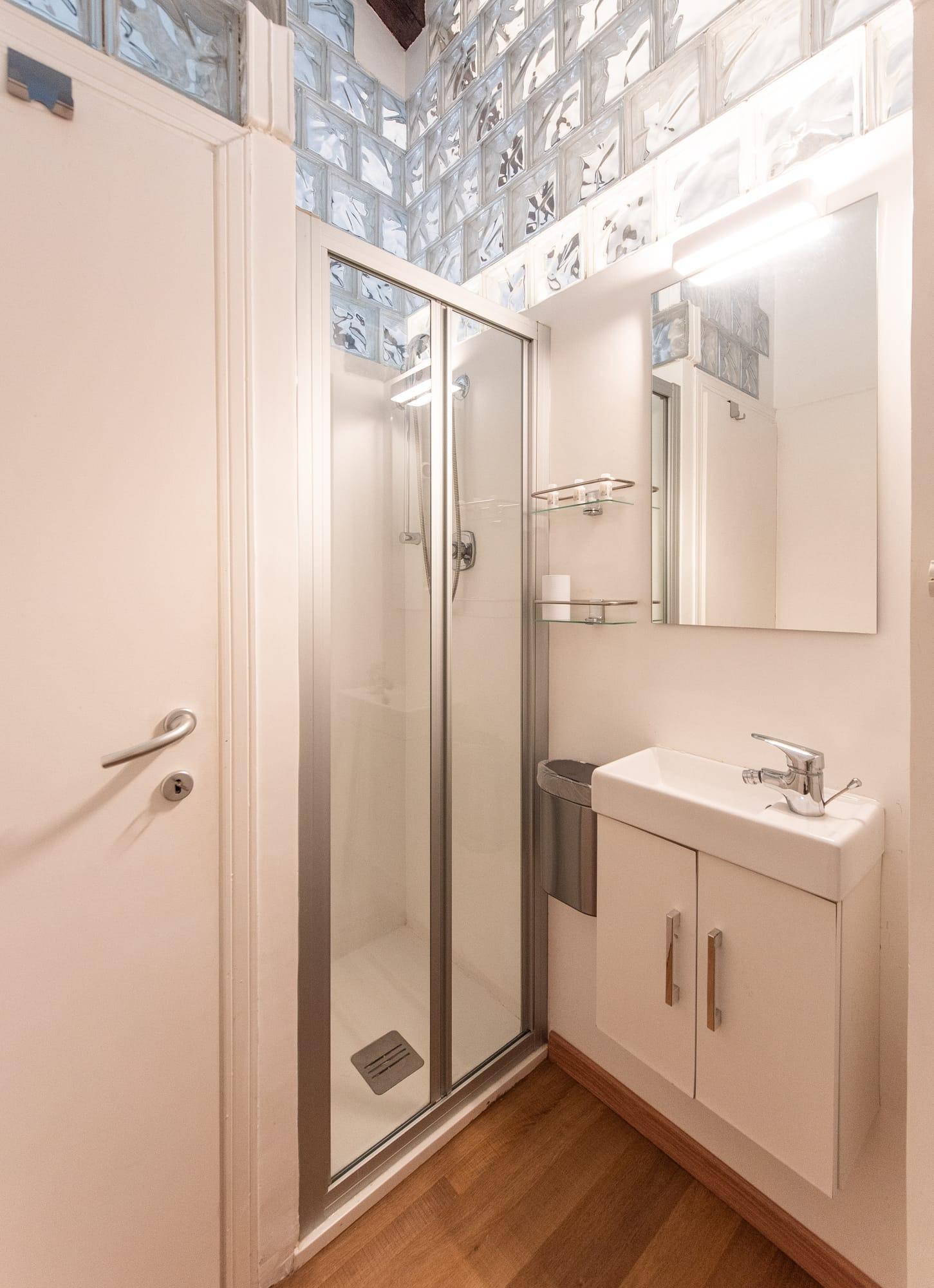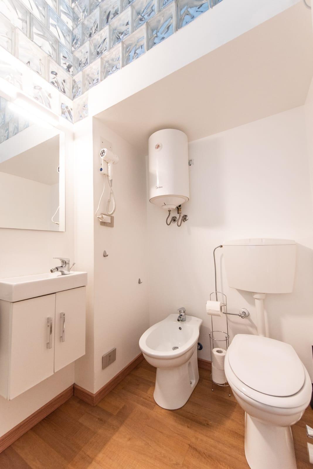 Das Badezimmer ist mit einer Dusche, WC, Bidet, Haartrockner sowie einem Spender für Shampoo, Duschgel und Seife ausgestattet, um maximalen Komfort zu gewährleisten. Die Wohnung ist klimatisiert (heiß/kalt) und bietet schnelles WLAN, ideal auch für Geschäftsreisende.