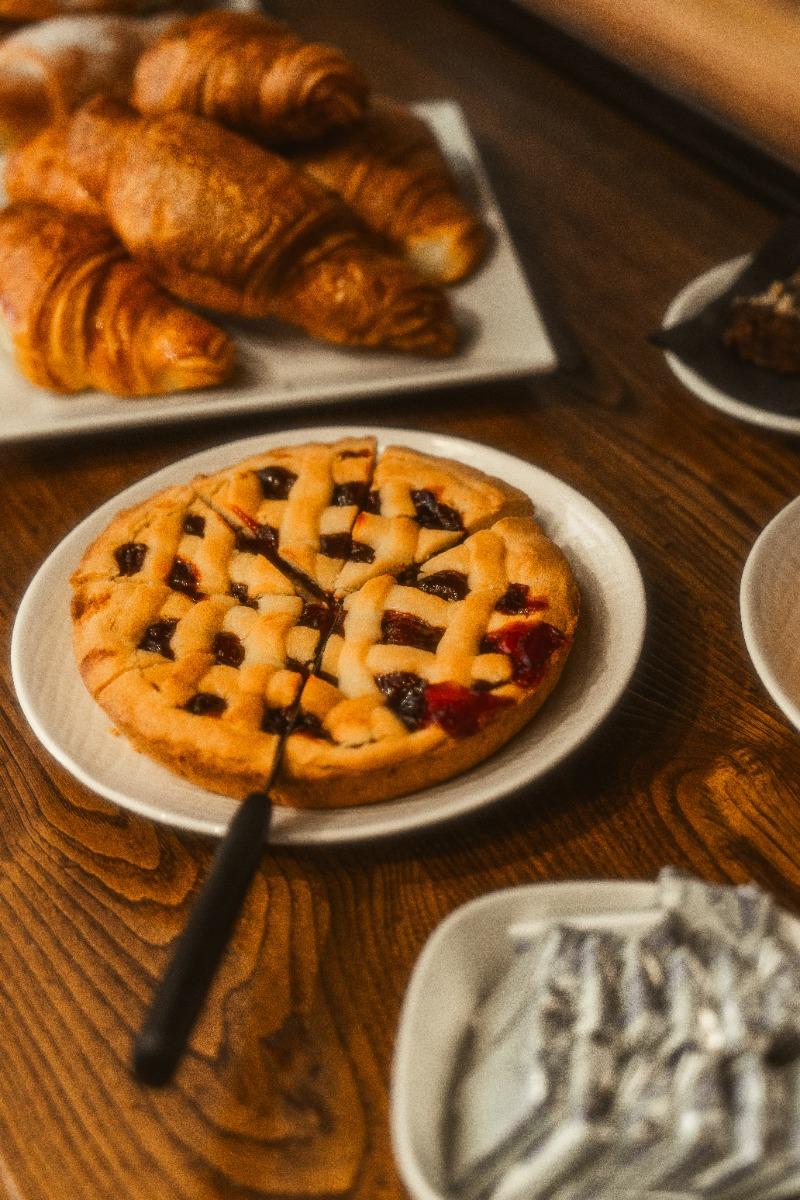 During your stay, you will be delighted by the scent of freshly baked brioches and can indulge in a rich buffet with jams, butter, yogurt, cereals, fruit juices, milk, and coffee.