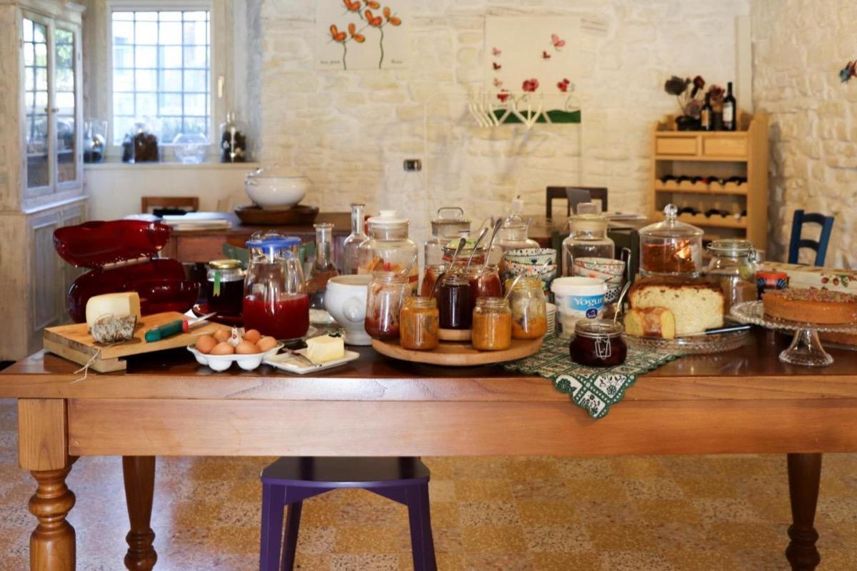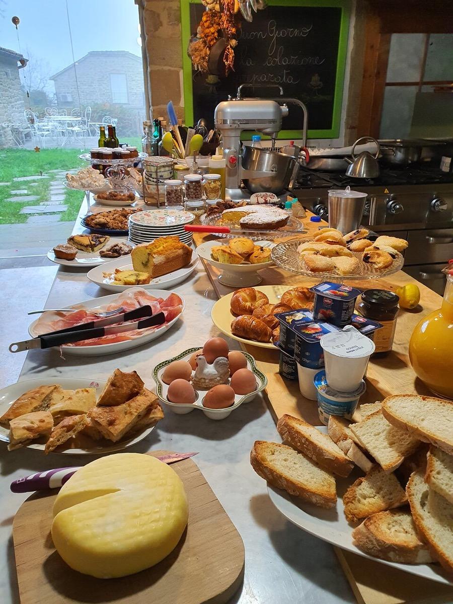 Currently, the delightful breakfast is served in the picturesque ground floor room of the inn. You can enjoy the fresh ricotta of the day, accompanied by our delicious homemade jams. Additionally, you can indulge in our homemade cakes and fresh seasonal fruit. If desired, you can also request high-quality local eggs and cold cuts.